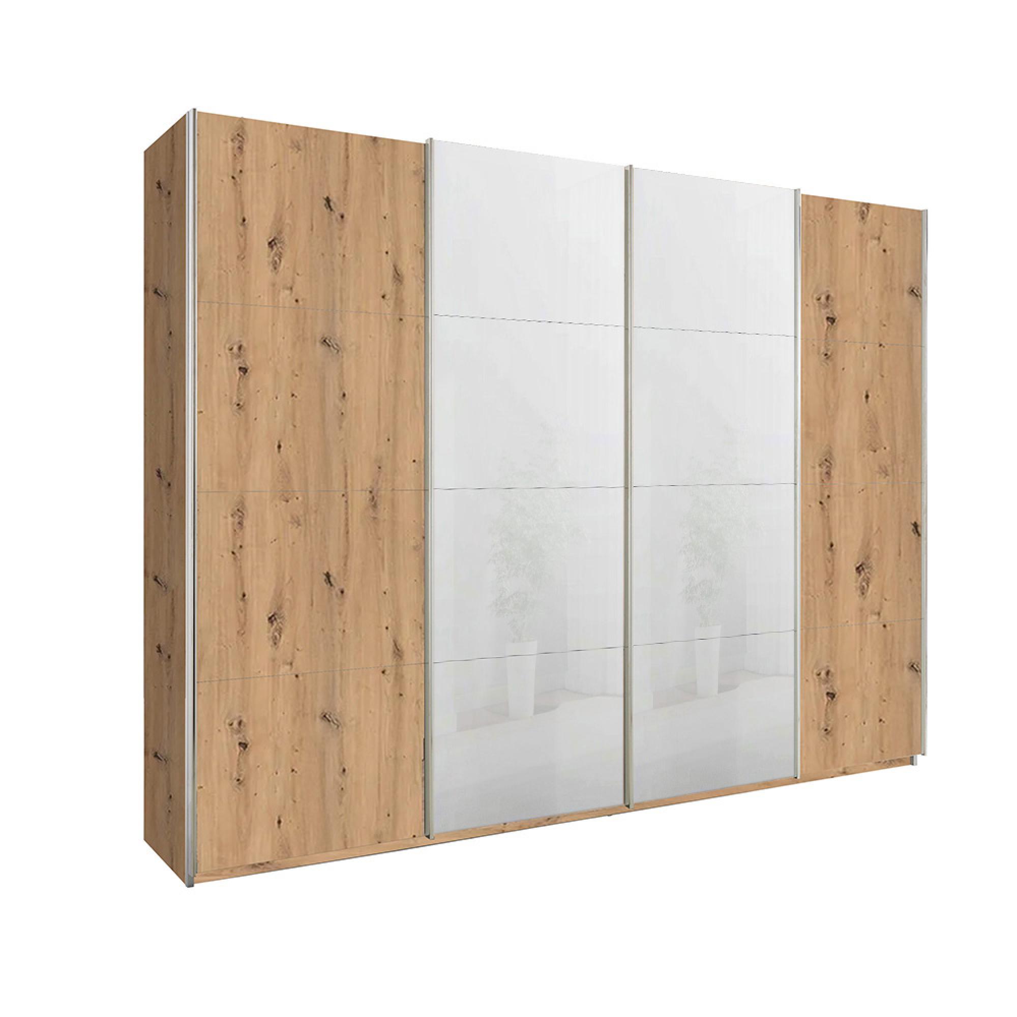 Rauch Beluga Extra 271cm 4 Door Sliding Wardrobe - White High Gloss and Artisan Oak Front