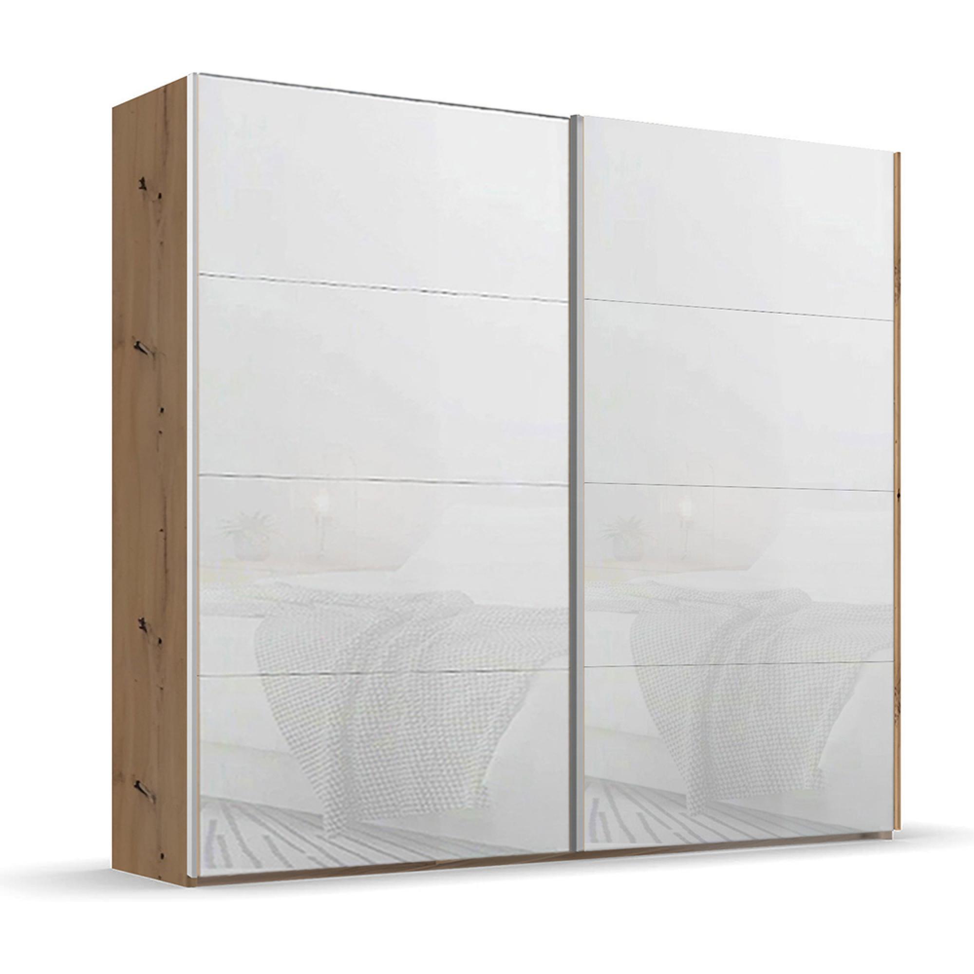 Rauch Beluga Extra 226cm 2 Door Sliding Wardrobe - Artisan Oak and White Glass