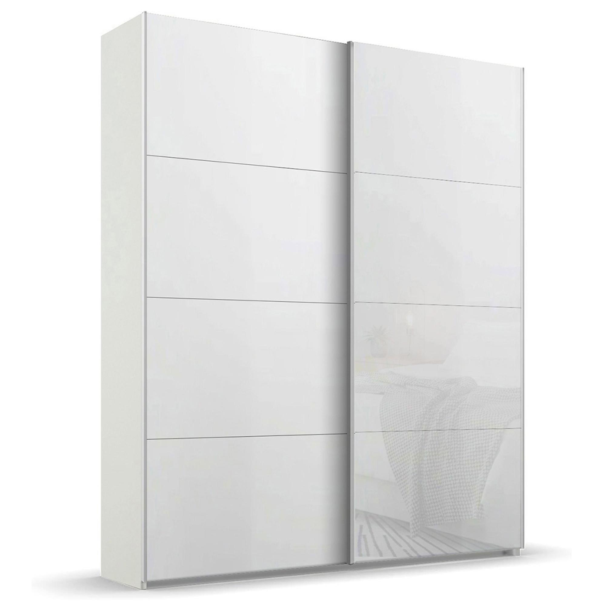Rauch Beluga Extra 137cm 2 Door Sliding Wardrobe - Alpine White and White Glass Front