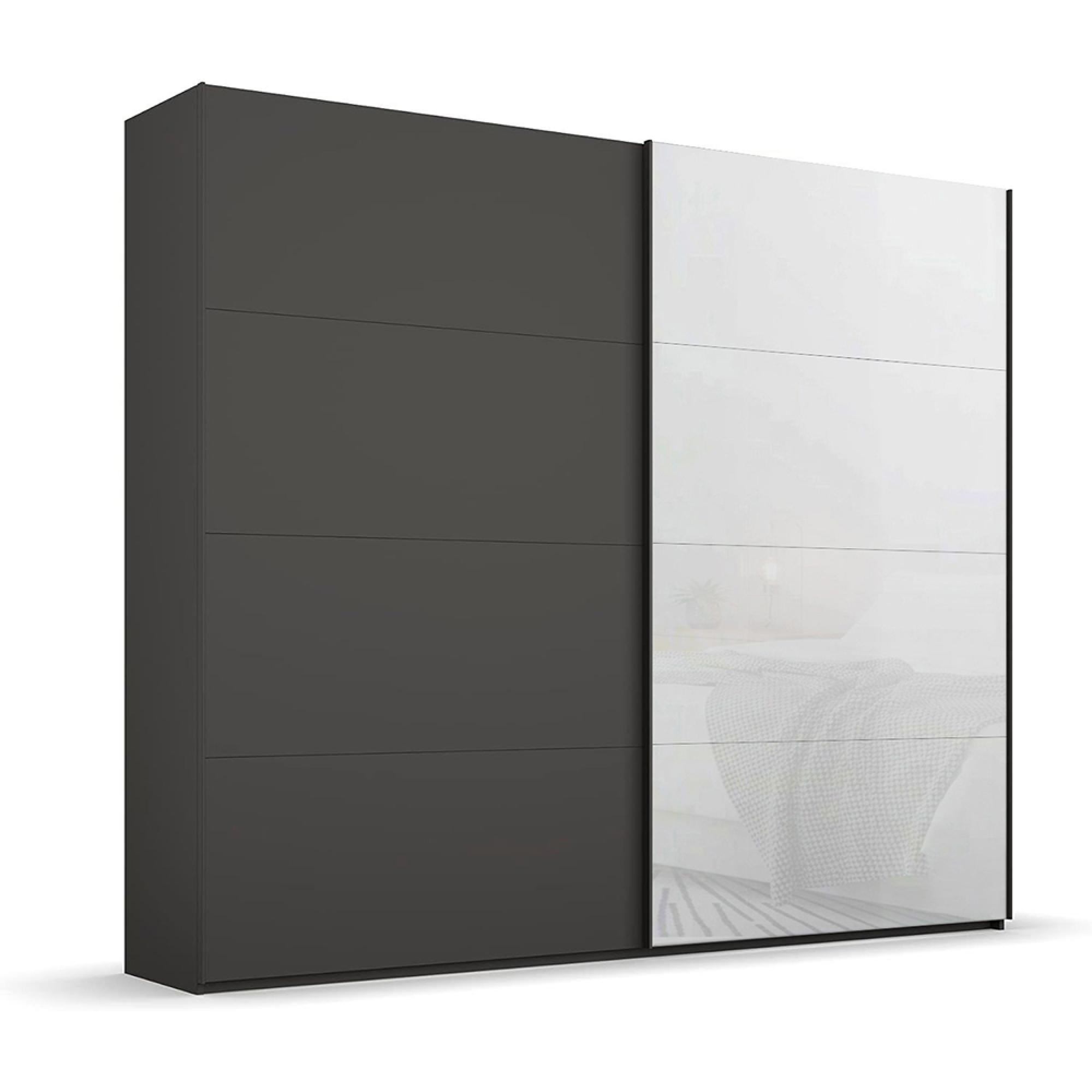 Rauch Beluga Extra 226cm 2 Door Sliding Wardrobe - Graphite and White Glass Front