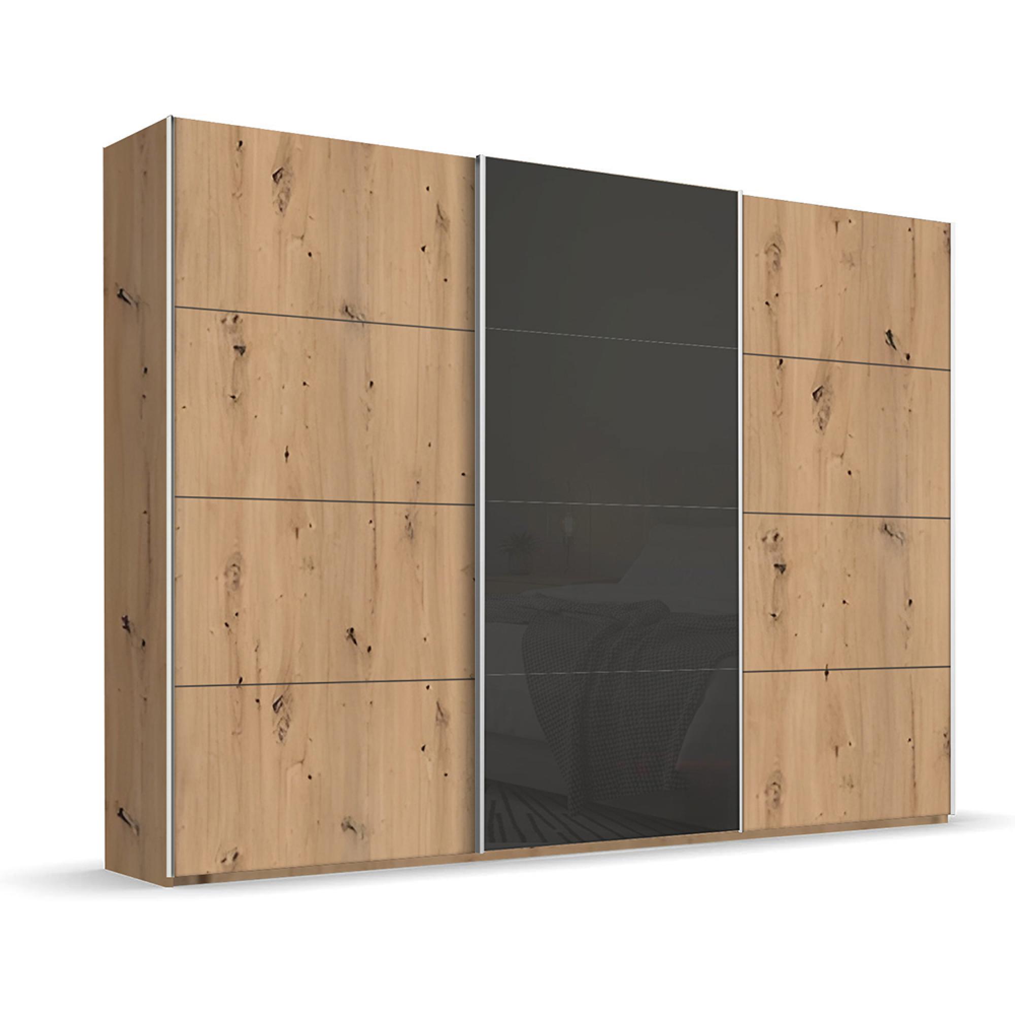 Rauch Beluga Extra 316cm 3 Door Sliding Wardrobe - Artisan Oak and Basalt Glass Front