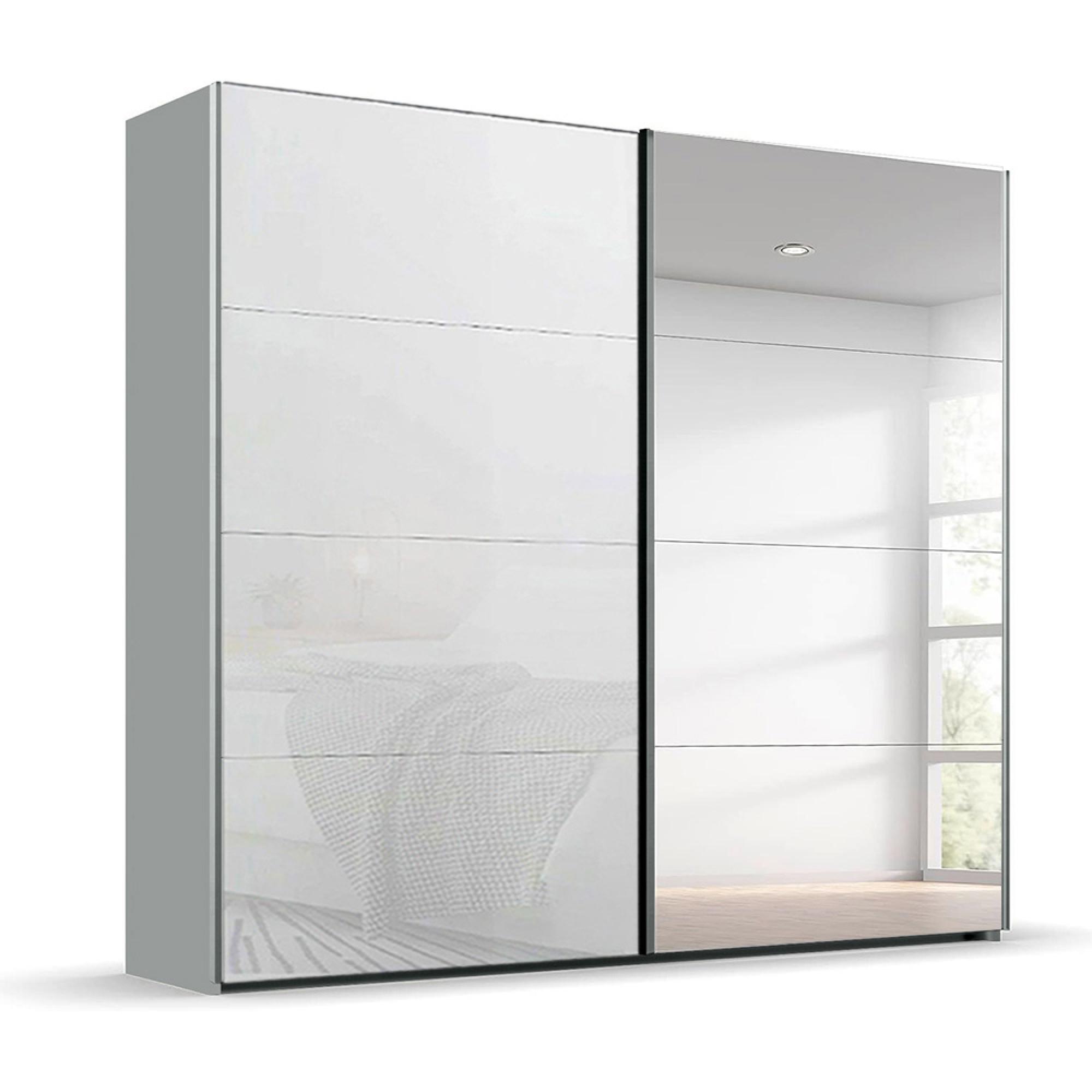 Rauch Beluga Extra 226cm 2 Door Sliding Wardrobe with Mirror - Silk Grey and White Glass