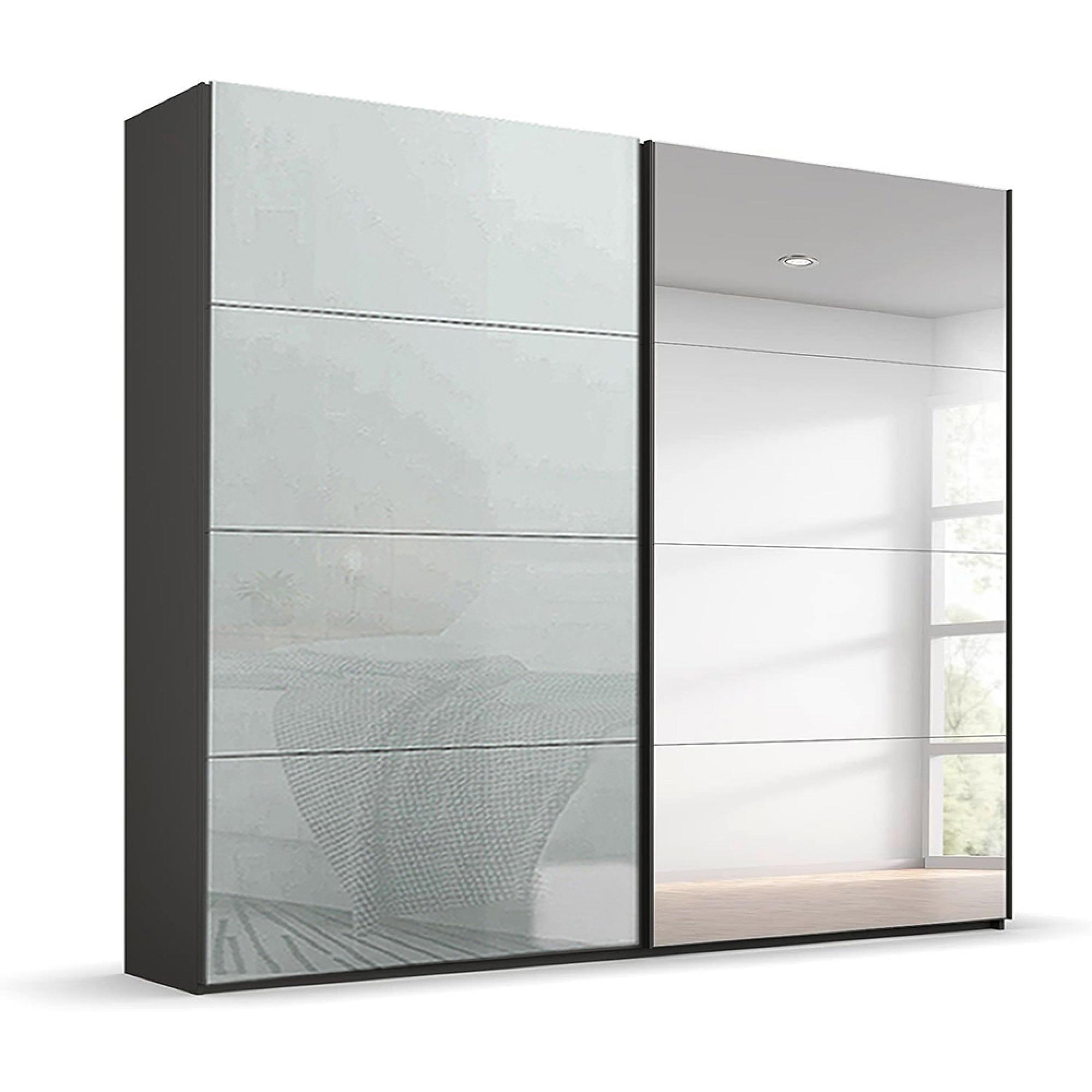 Beluga Extra Sliding Wardrobe - 226cm - 2 Door - Mirror - Graphite & Silk Grey Glass