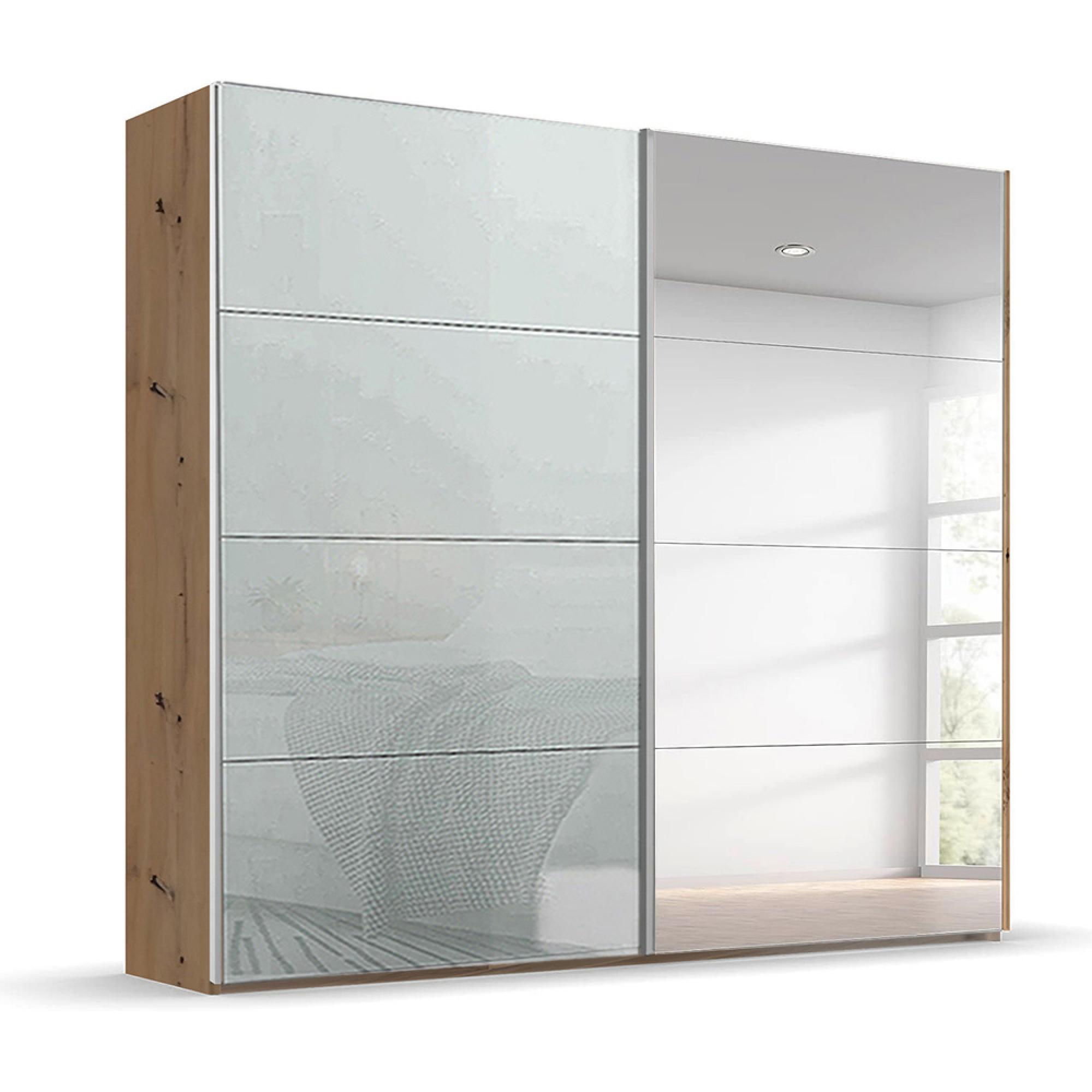 Rauch Beluga Extra 226cm 2 Door Sliding Wardrobe with Mirror - Artisan Oak and Silk Grey Glass