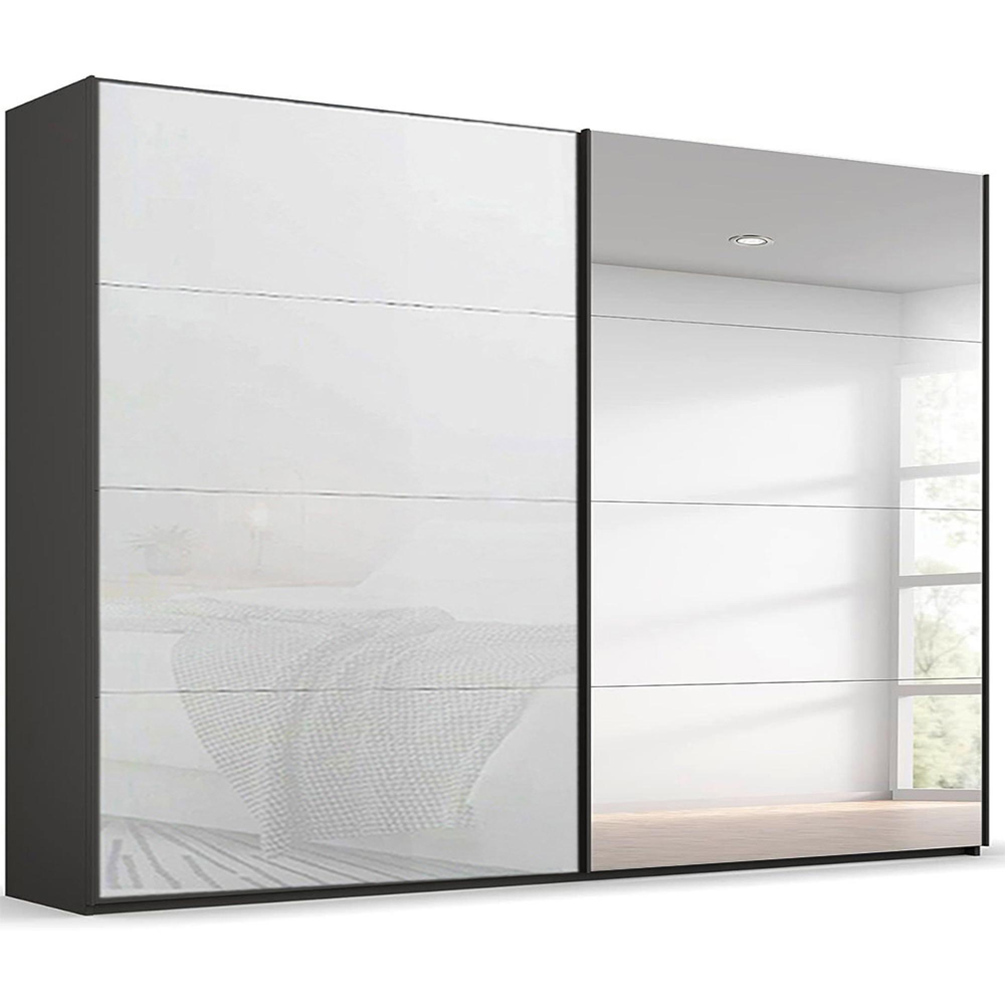 Rauch Beluga Extra 271cm 2 Door Sliding Wardrobe with Mirror - Graphite and White Glass
