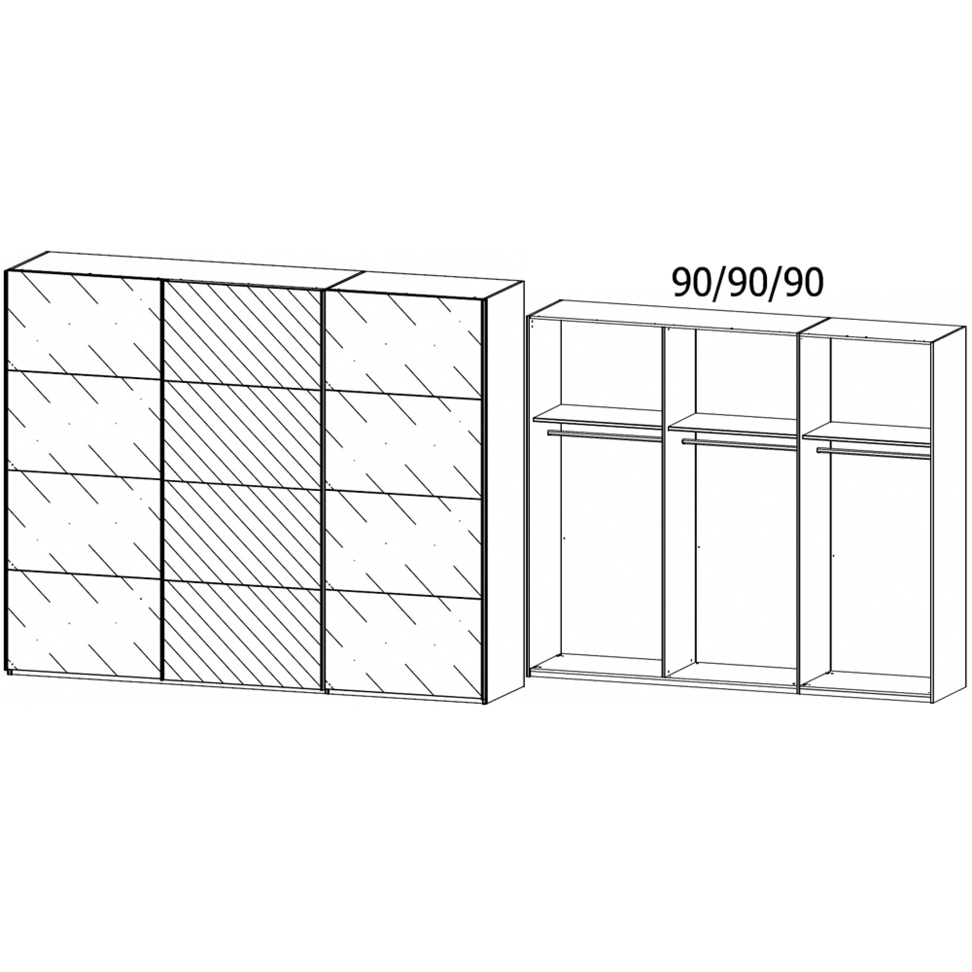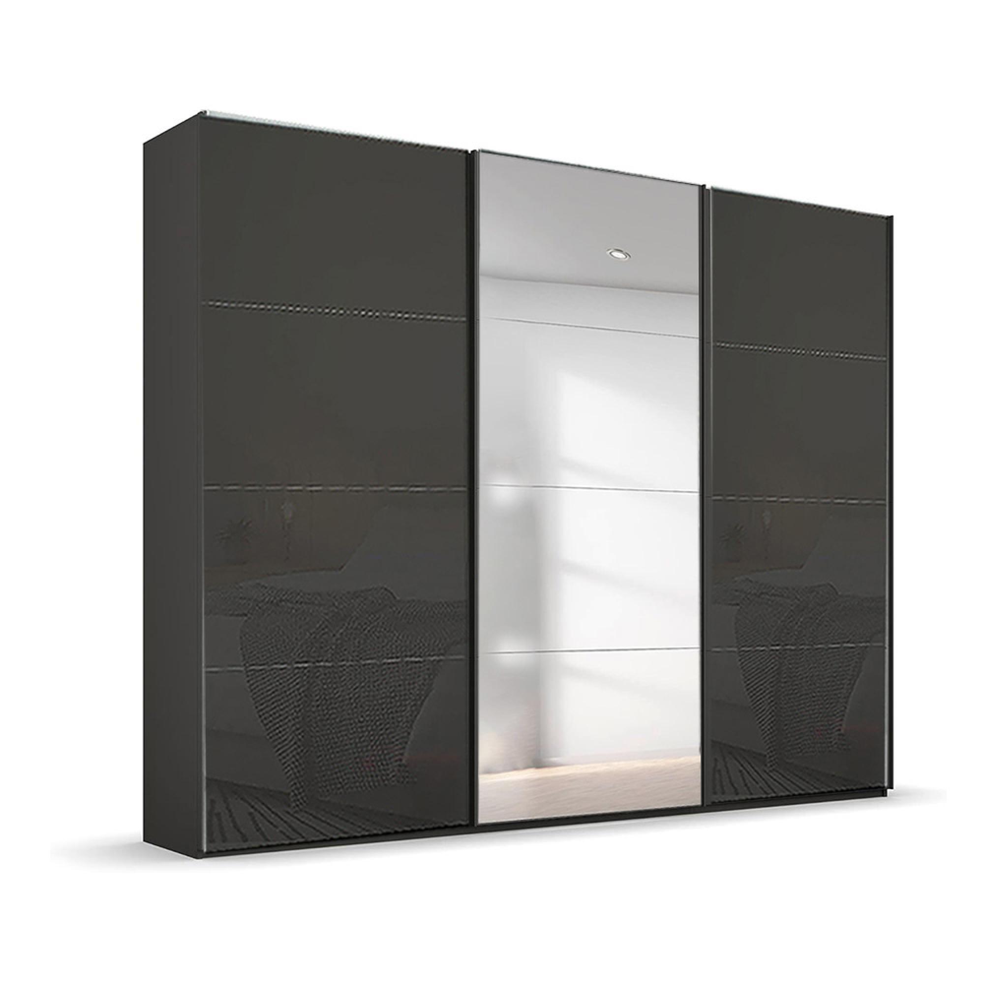 Rauch Beluga Extra 271cm 3 Door Sliding Wardrobe with Mirror - Graphite and Basalt Glass