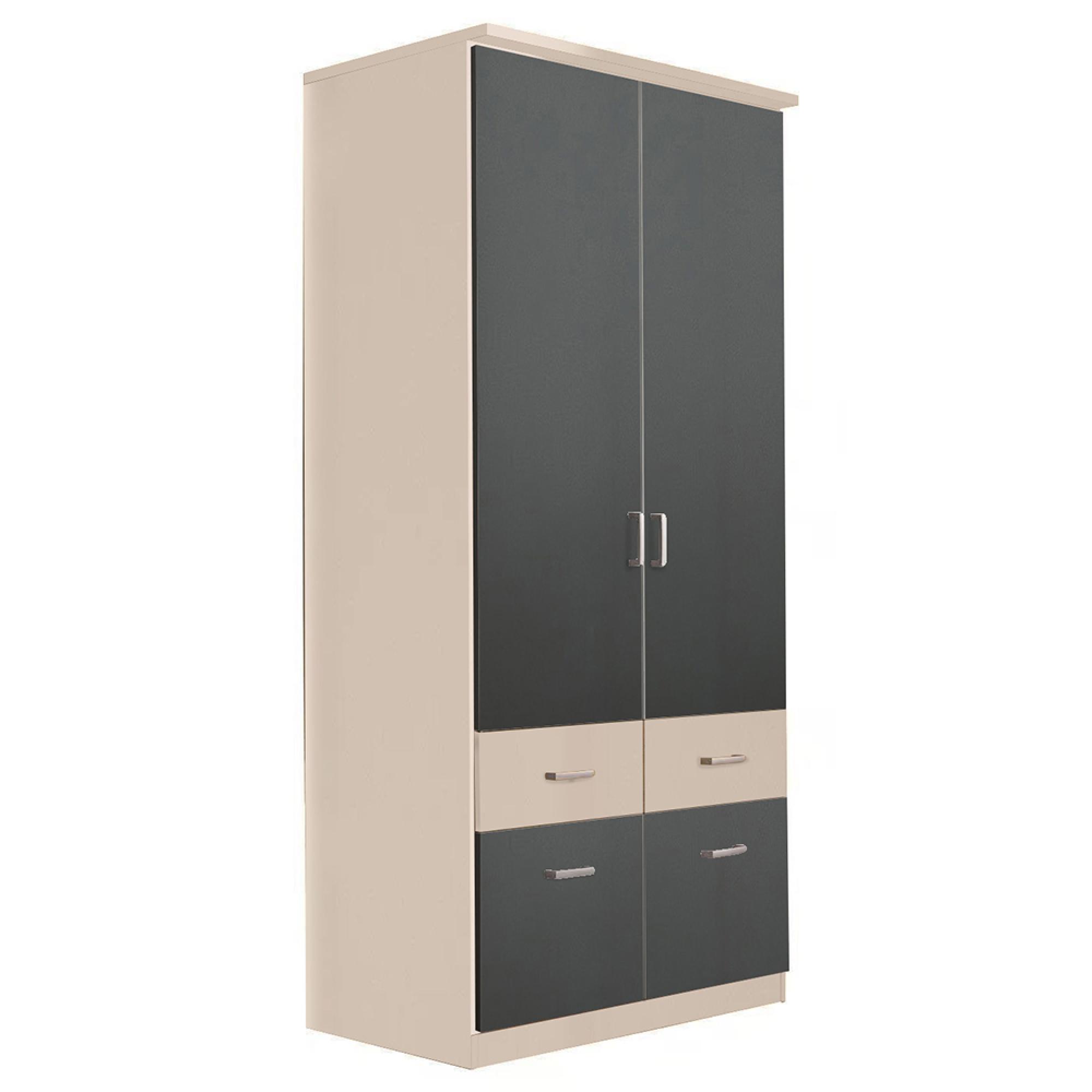 Rauch Celle Super 91cm 2 Door Wardrobe with Drawer and Extras - Champagne and Metallic Dark Grey