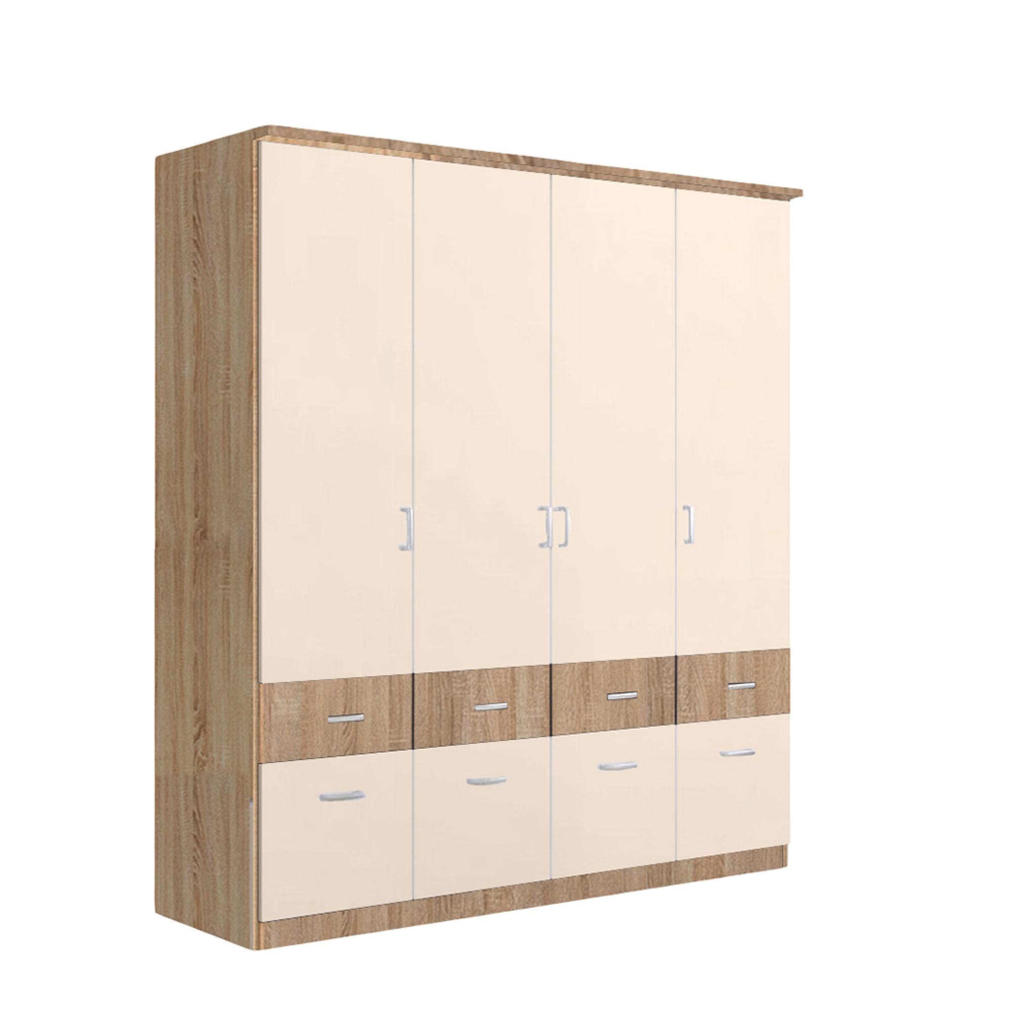 Rauch Celle Super 181cm 4 Door Wardrobe with Drawer - Sonoma Oak and Champagne