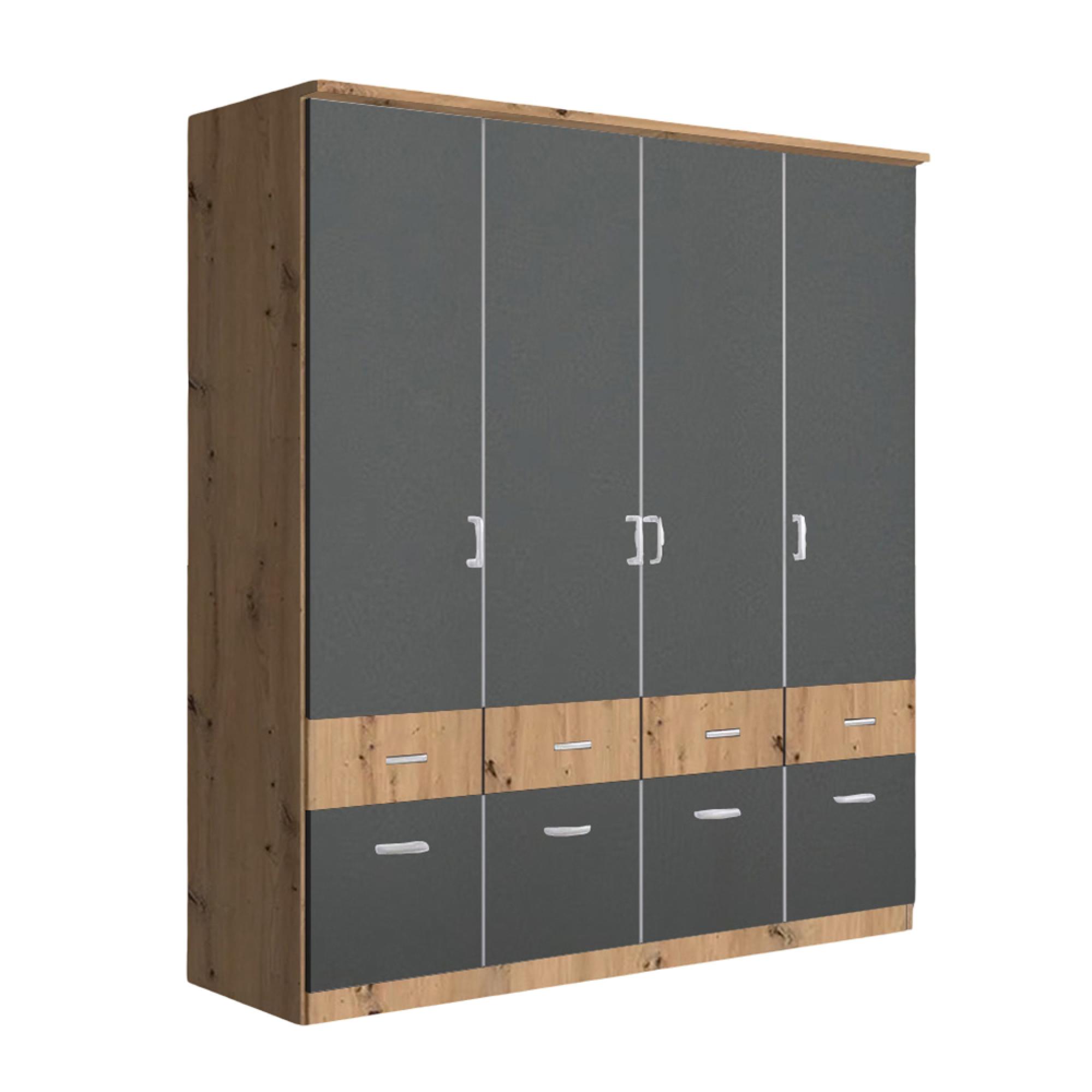 Rauch Celle Super 181cm 4 Door Wardrobe with Drawer - Artisan Oak and Metallic Dark Grey