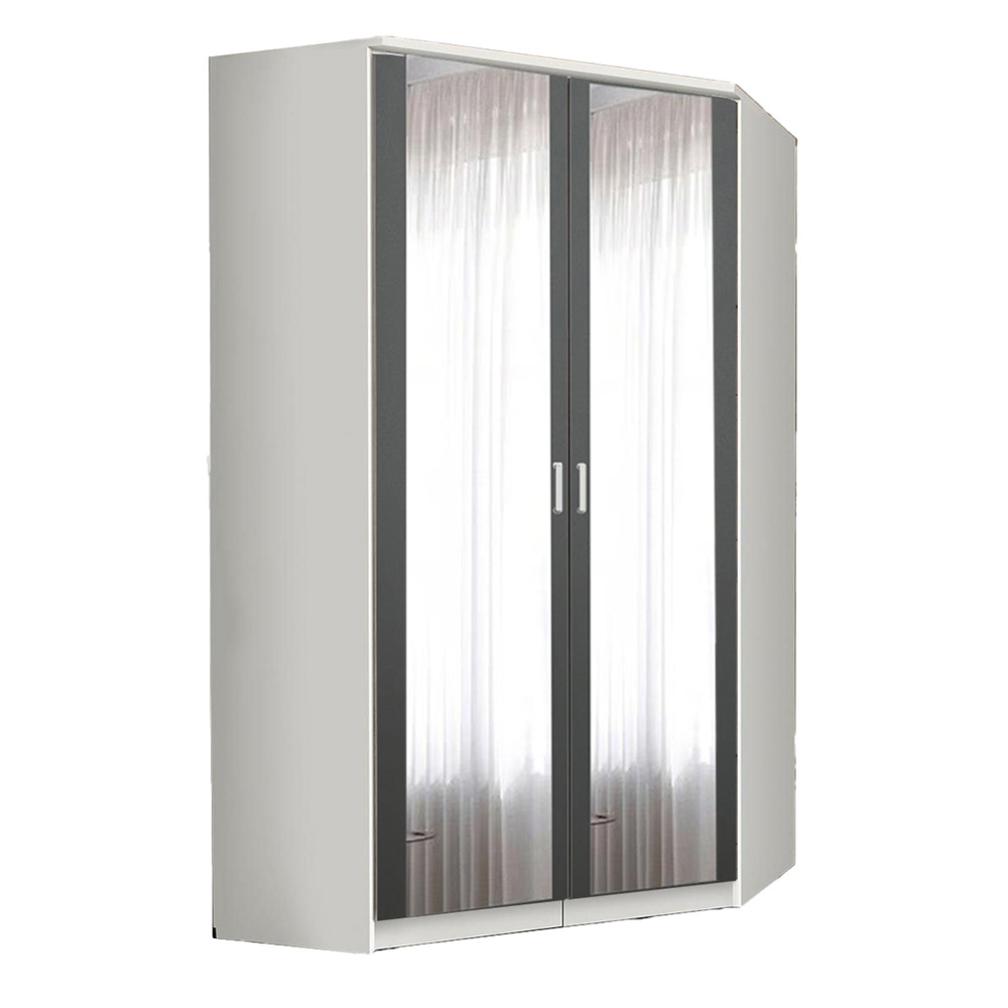 Rauch Celle Super 117cm 2 Door Corner Wardrobe with Mirror - Alpine White and Metallic Dark Grey
