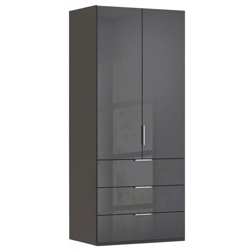 Miramar Type-5 Wardrobe - 101cm - 2 Door - 3 Drawer - Graphite & Basalt Glass