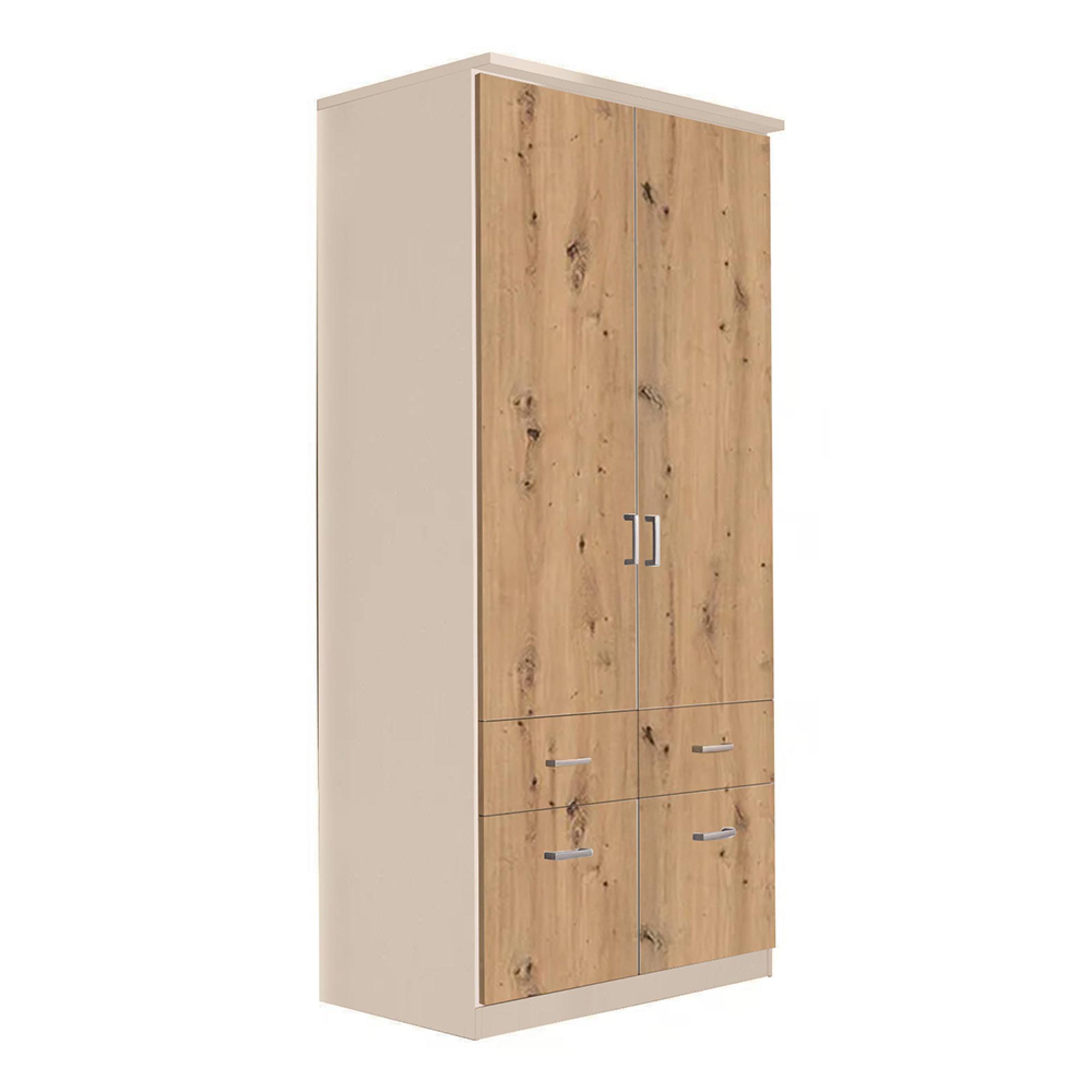 Rauch Celle Matt 91cm 2 Door Wardrobe with Drawer and Extras - Champagne and Artisan Oak