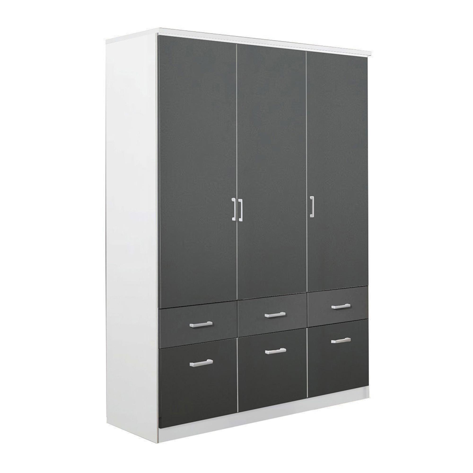 Rauch Celle Matt 136cm 3 Door Wardrobe with Drawer - Alpine White and Metallic Dark Grey