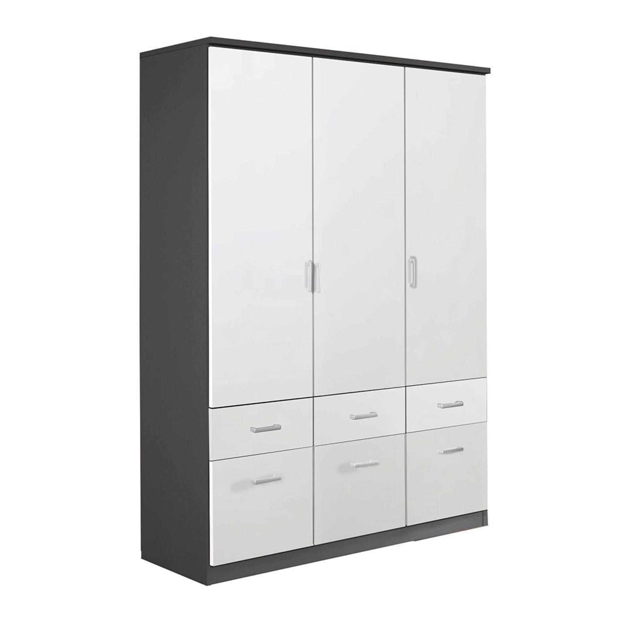 Rauch Celle Matt 136cm 3 Door Wardrobe with Drawer - Metallic Dark Grey and Alpine White