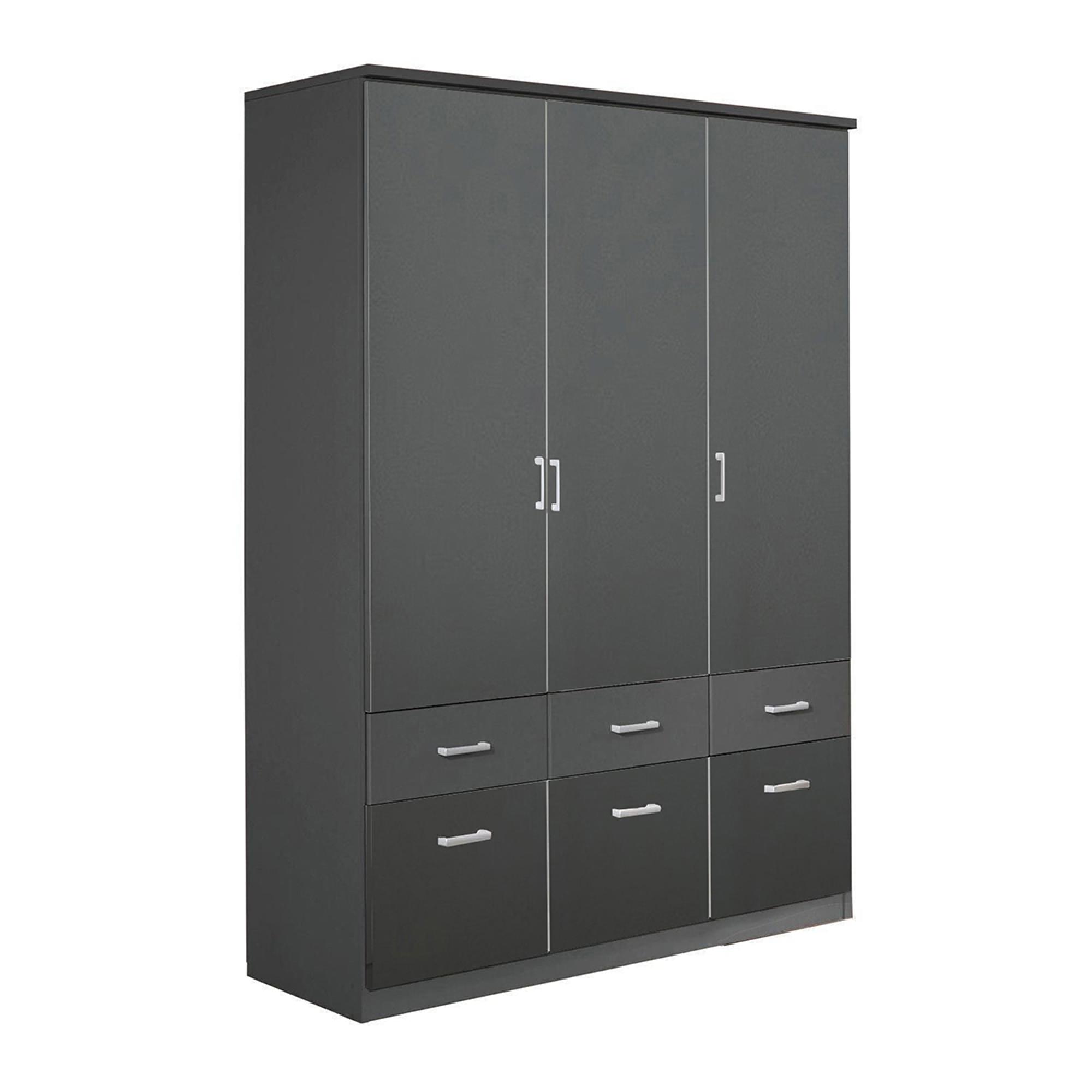Rauch Celle Matt 136cm 3 Door Wardrobe with Drawer - Metallic Dark Grey