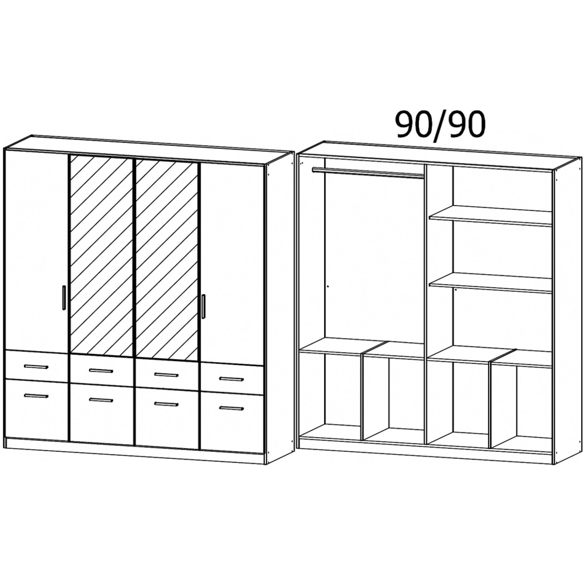 Rauch Celle Matt 181cm 4 Door Combi Wardrobe - Sonoma Oak and Metallic Dark Grey