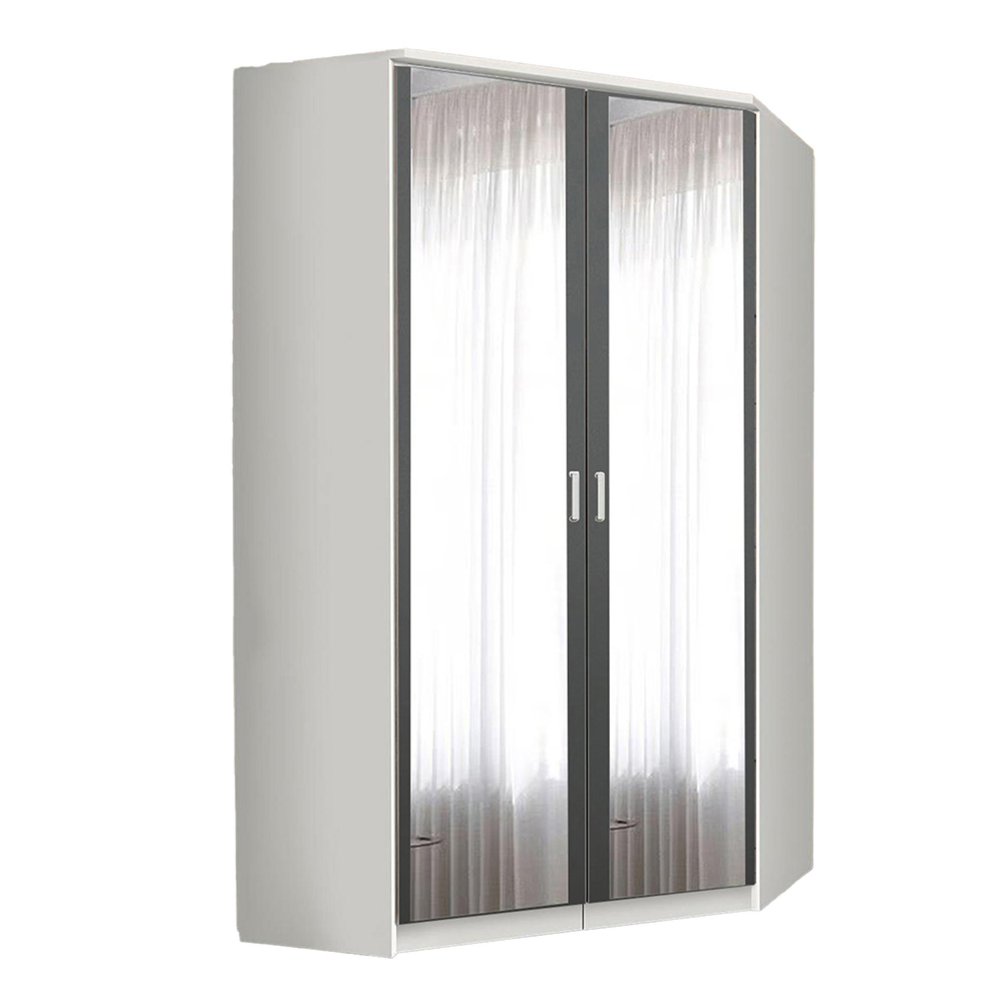Rauch Celle Matt 117cm 2 Door Corner Wardrobe with Mirror - Alpine White and Metallic Dark Grey