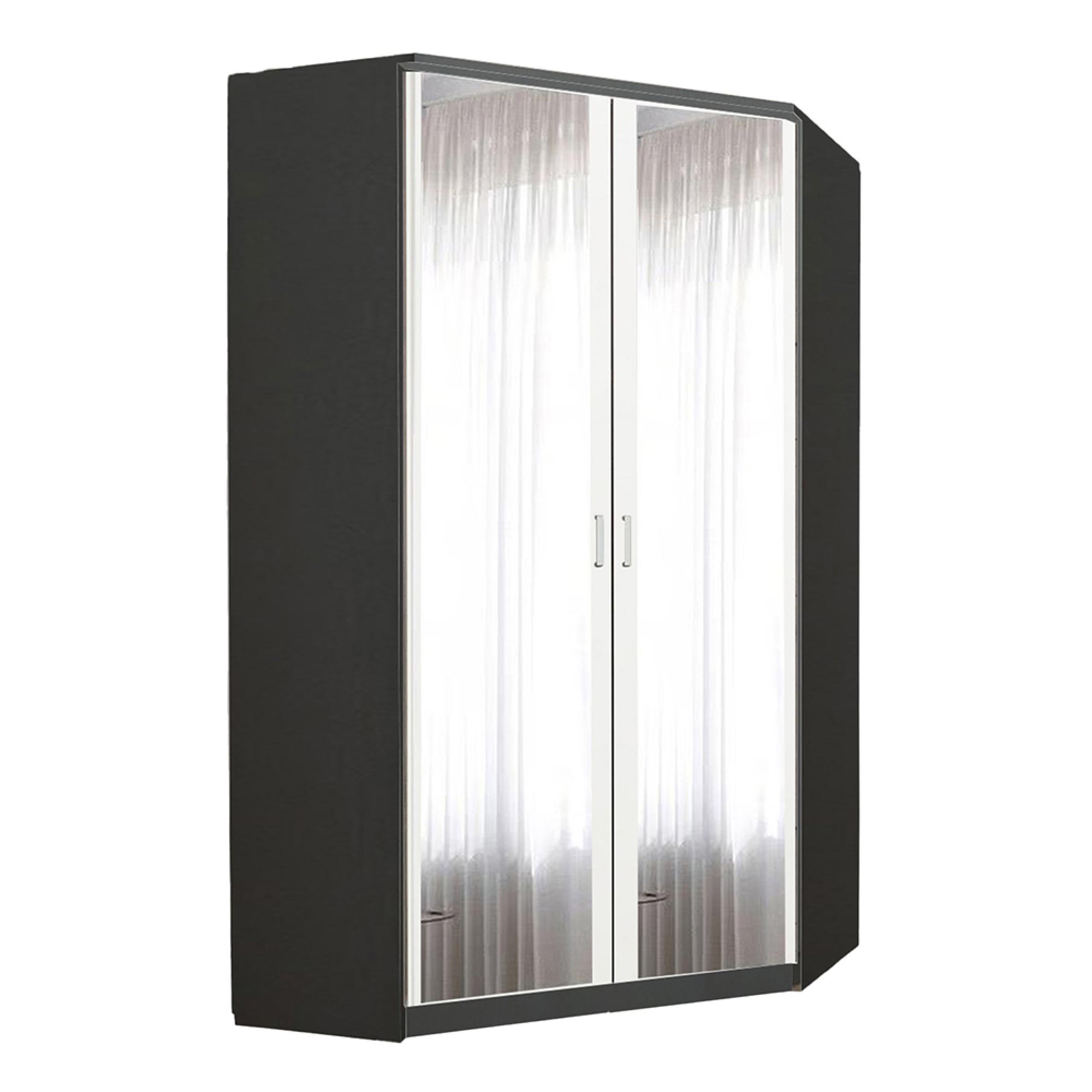 Rauch Celle Matt 117cm 2 Door Corner Wardrobe with Mirror - Metallic Dark Grey and Alpine White