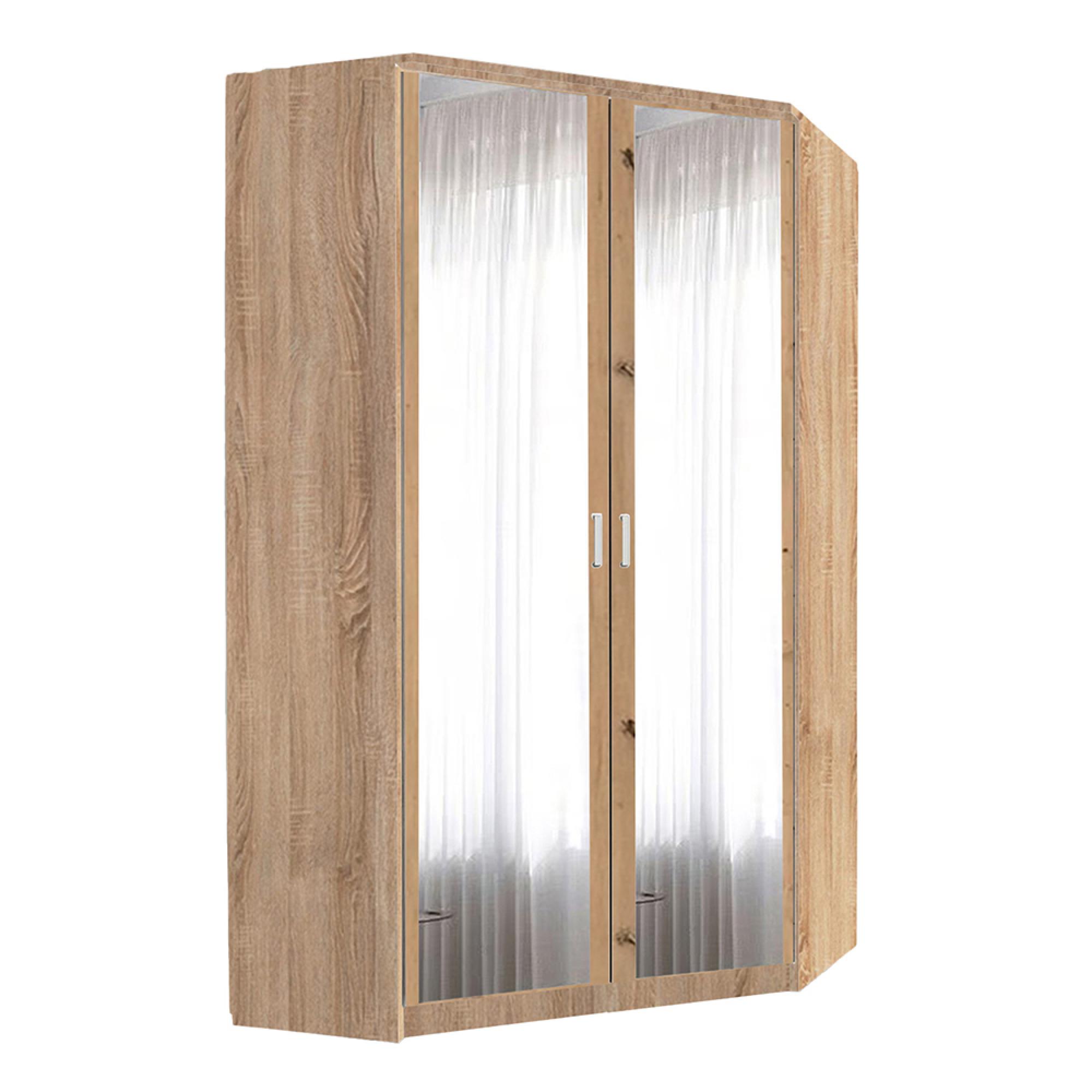 Rauch Celle Matt 117cm 2 Door Corner Wardrobe with Mirror - Sonoma Oak and Artisan Oak