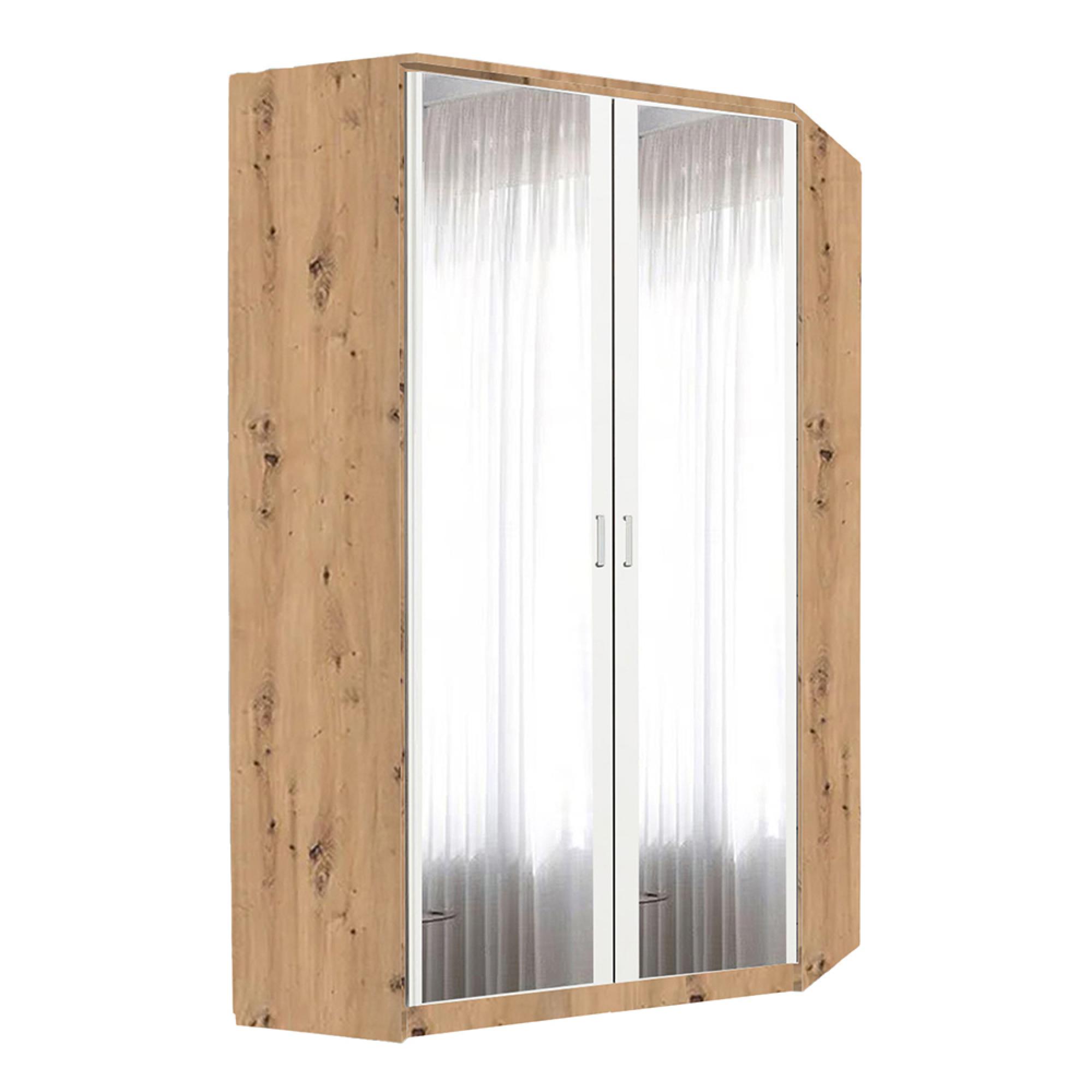 Rauch Celle Matt 117cm 2 Door Corner Wardrobe with Mirror - Artisan Oak and Alpine White
