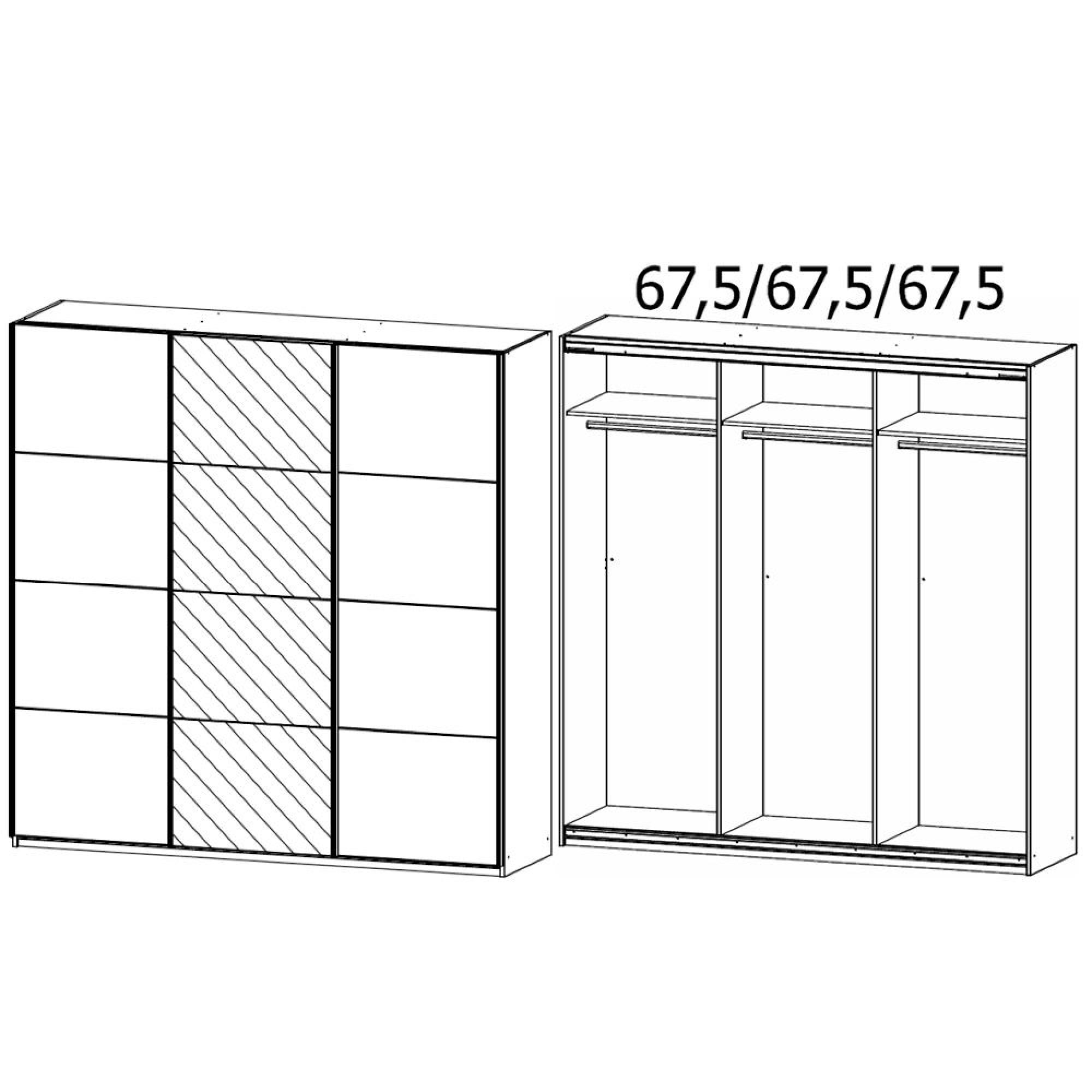 Rauch Kulmbach 203cm 3 Door Sliding Wardrobe with Mirror - Silk Grey