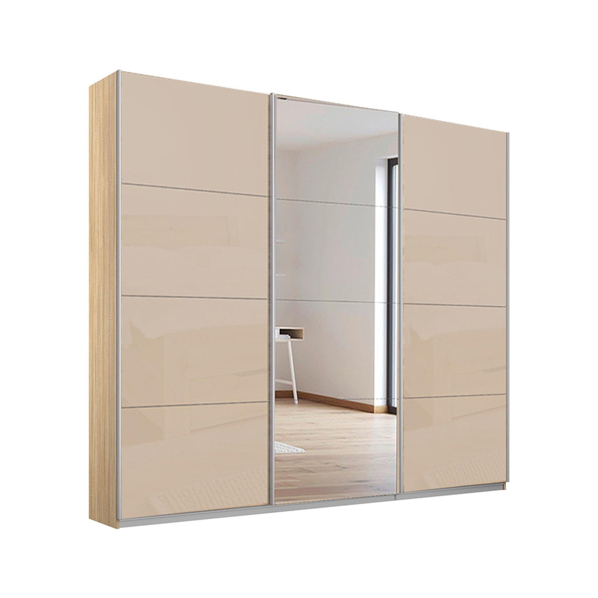 Rauch Kulmbach 203cm 3 Door Sliding Wardrobe with Mirror - Sonoma Oak and Champagne Glass