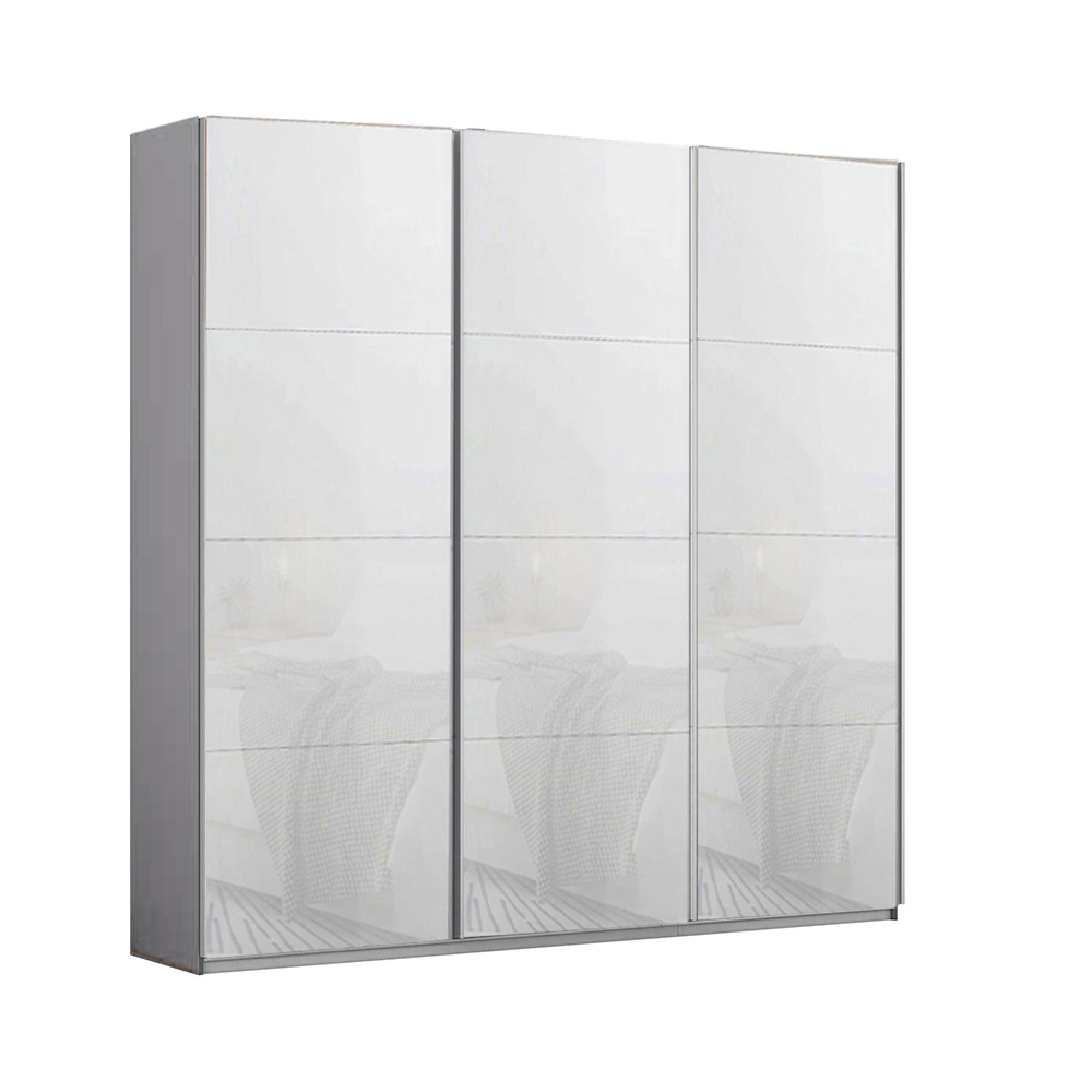 Rauch Kulmbach 203cm 3 Door Sliding Wardrobe - Silk Grey and White Glass