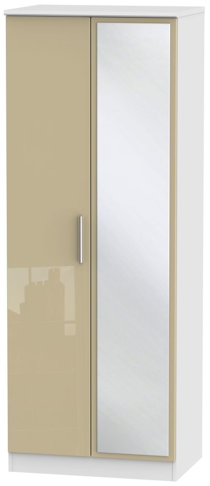 Knightsbridge Wardrobe - 2 Door - 1 Mirror - Tall - Mushroom and White