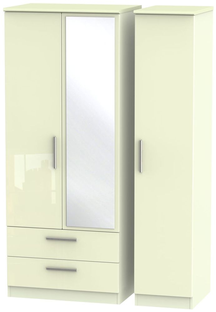 Knightsbridge Cream Gloss 3 Door Combi Wardrobe - 1 Mirror and LHF 2 Drawers