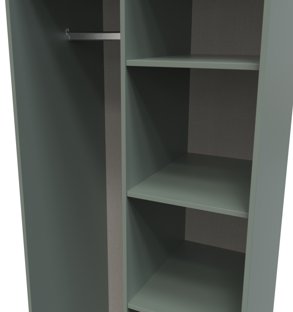 Item Code: LIF084RG This linear wardrobe offers a great solution for your storage needs. Constructed with particle wood, it is sure to last for years. With four shelves and reed green finish, this assembled piece offers a great look and can easily match any decor. Perfect for any room, it provides plenty of storage without taking up too much space.