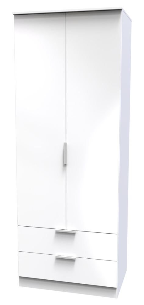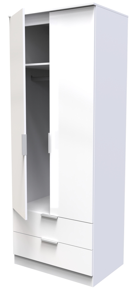 Plymouth White Gloss 2 Door 2 Drawer Tall Wardrobe