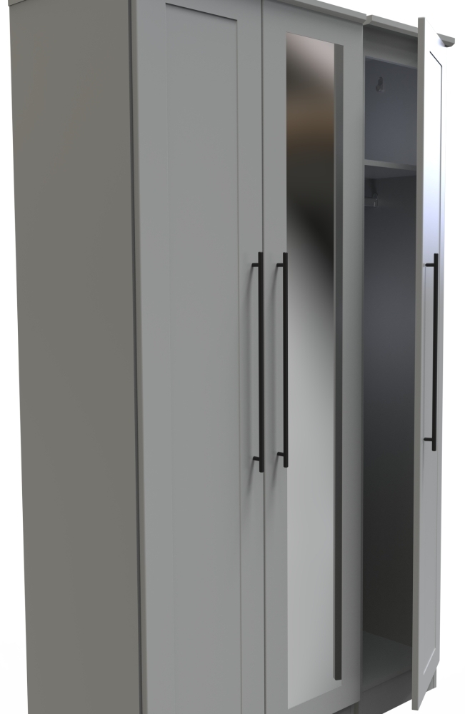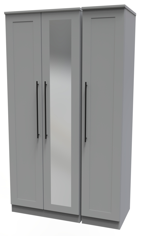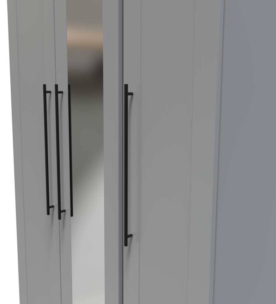 Beverley Wardrobe - 3 Door - Tall Triple - with 1 Mirror - Grey