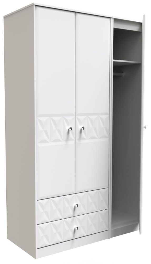 San Jose Wardrobe - 3 Door - LHF 2 Drawers - Triple - Tall - White