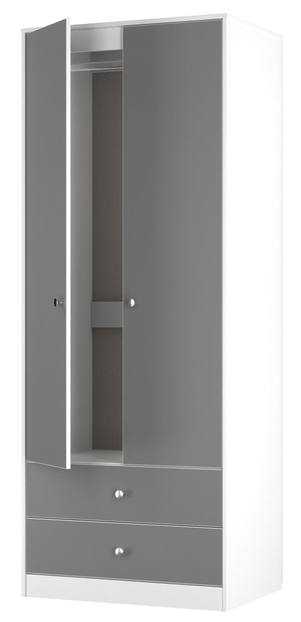 Padstow Grey and White 2 Door 2 Drawer Tall Wardrobe