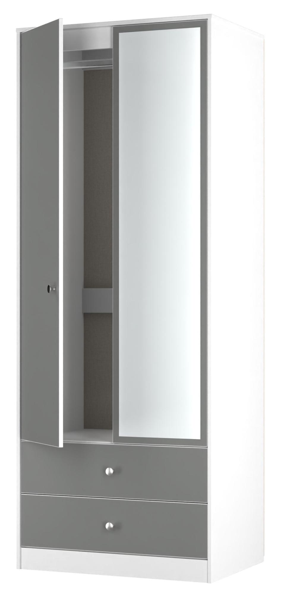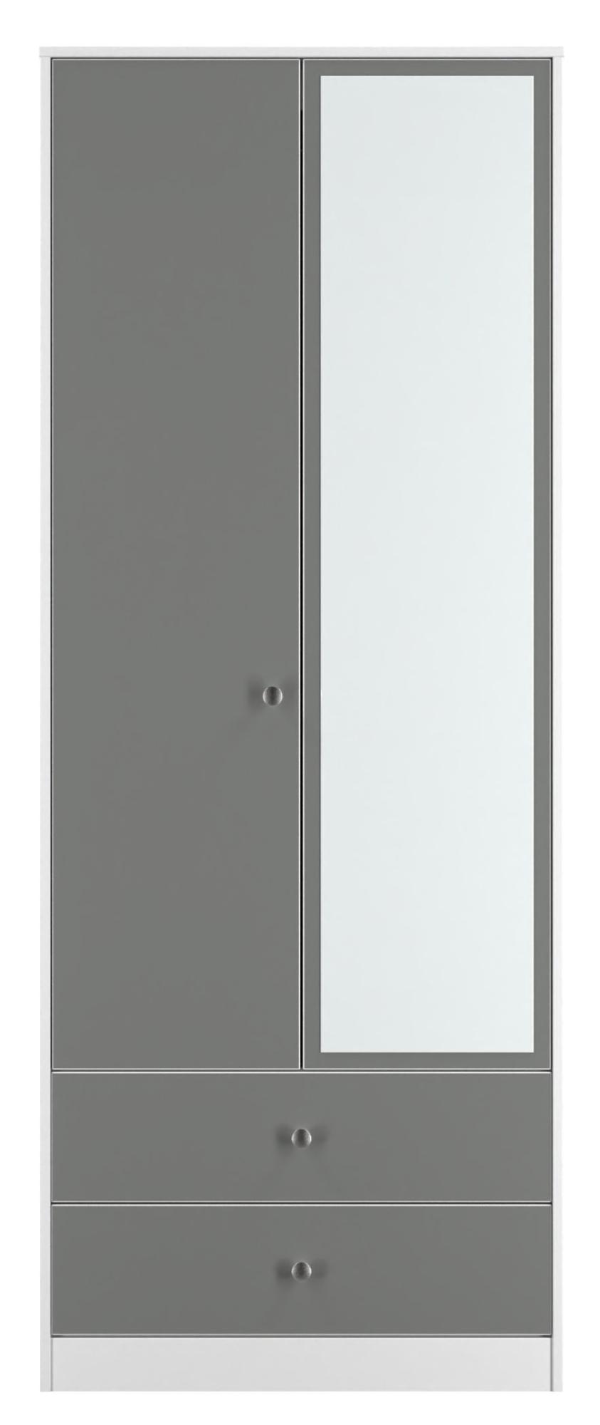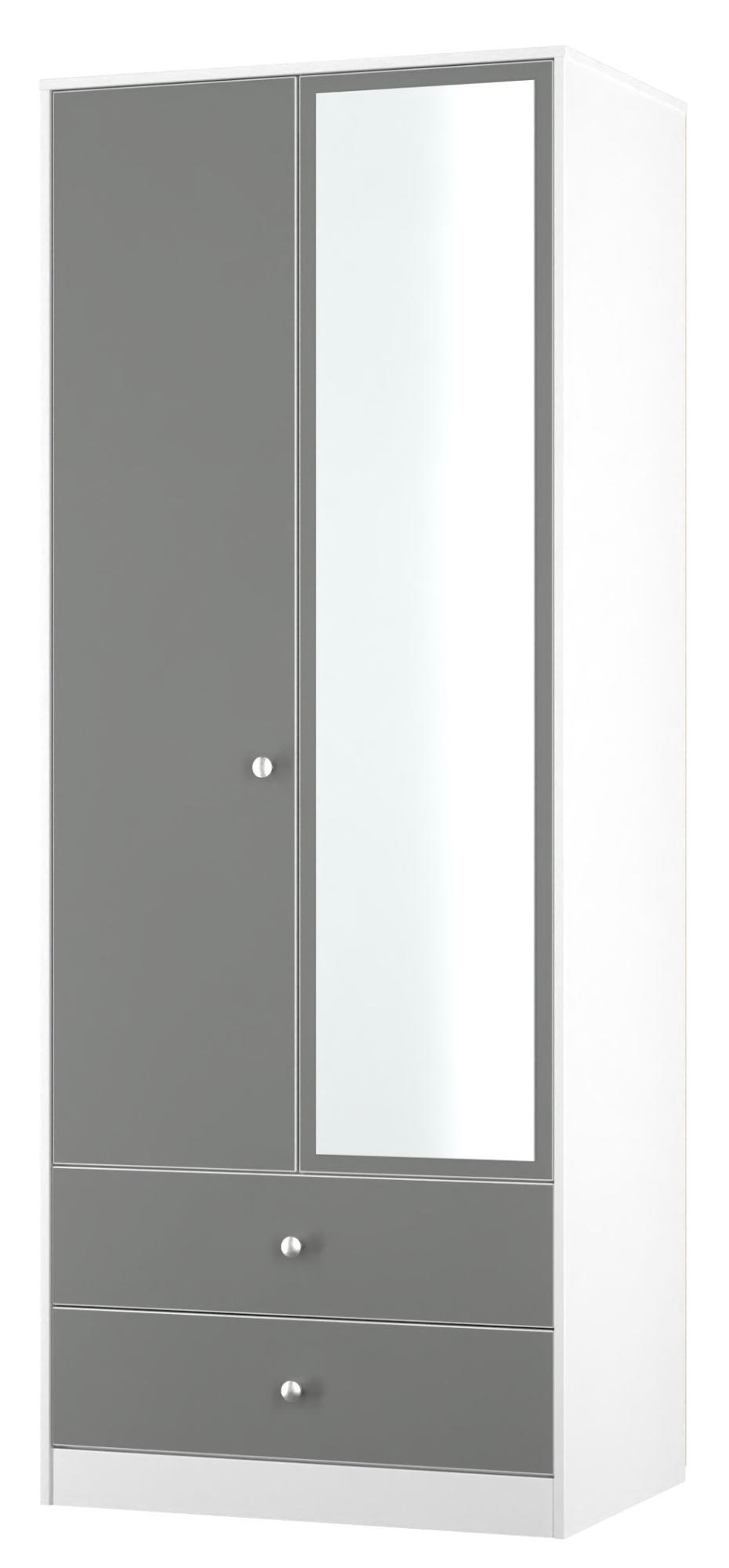 Padstow Grey and White 2 Door Tall Combi Wardrobe - 1 Mirror