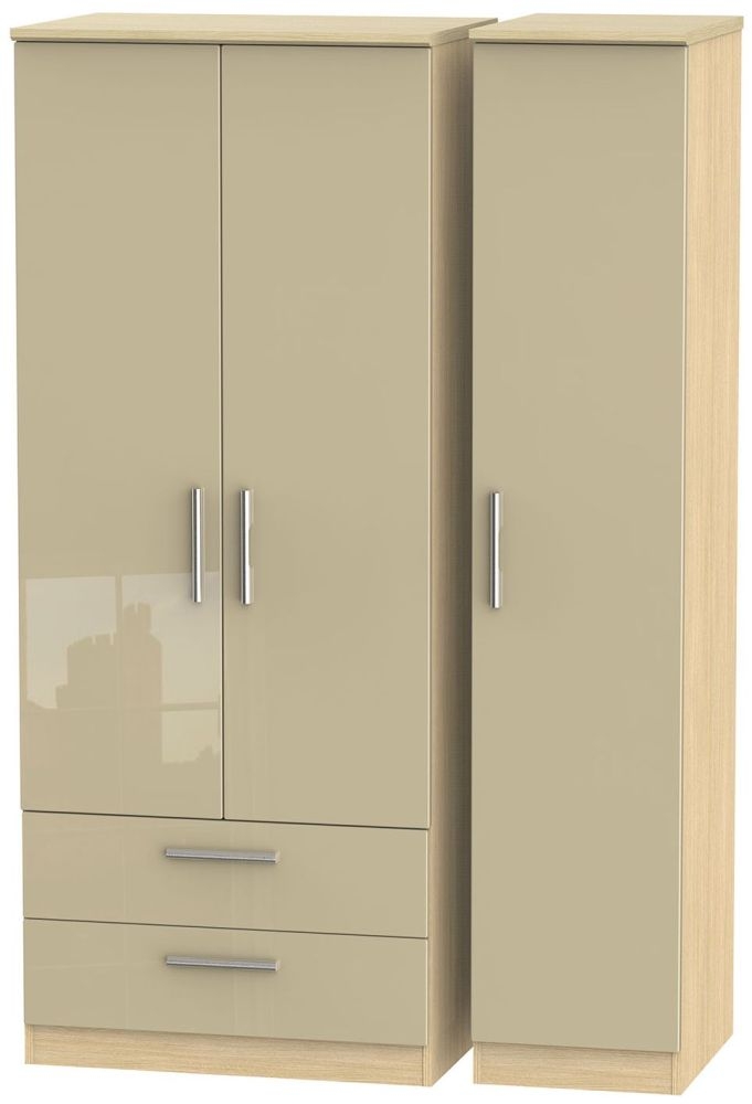 Knightsbridge Mushroom and Light Oak 3 Door Triple Wardrobe - LHF 2 Drawers
