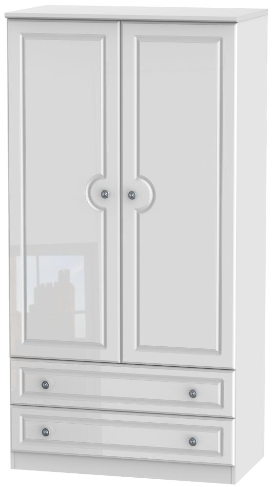 Pembroke White Gloss 2 Door 2 Drawer Double Wardrobe - H 182.4cm
