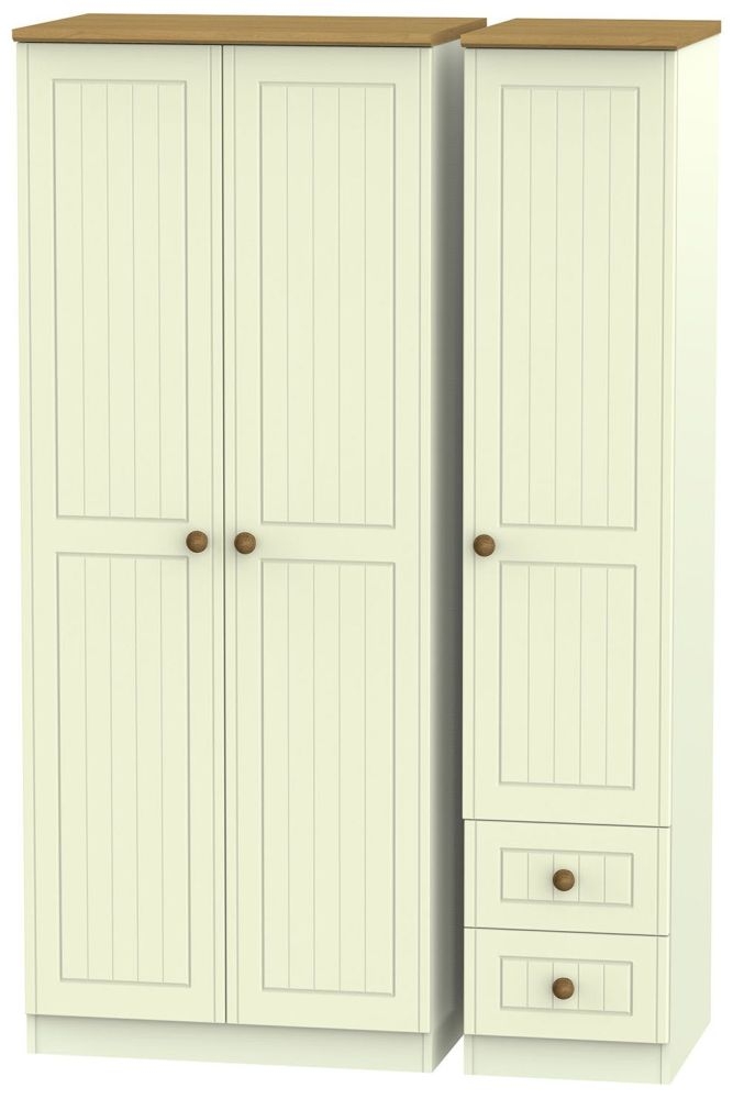 Warwick Cream and Oak 3 Door Triple Wardrobe - RHF 2 Drawers