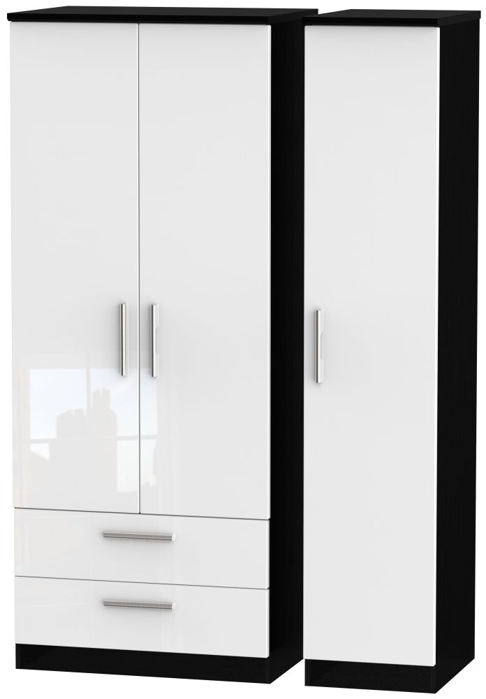 Knightsbridge Wardrobe - 3 Door - LHF 2 Drawer - Triple - White Gloss and Black
