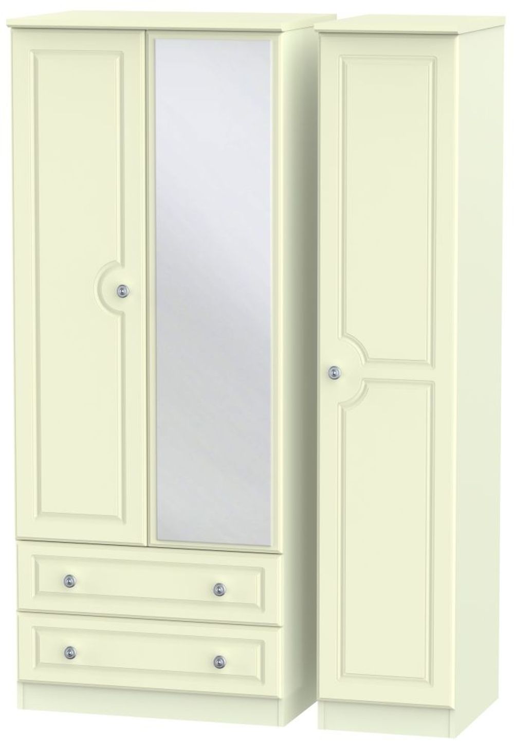 Pembroke Wardrobe - 3 Door - 1 Mirror - LHF 2 Drawers - Combi - Cream