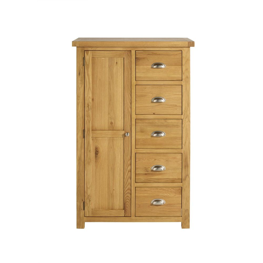 Woburn Short Wardrobe - 1 Door 5 Drawer - Rustic Oak