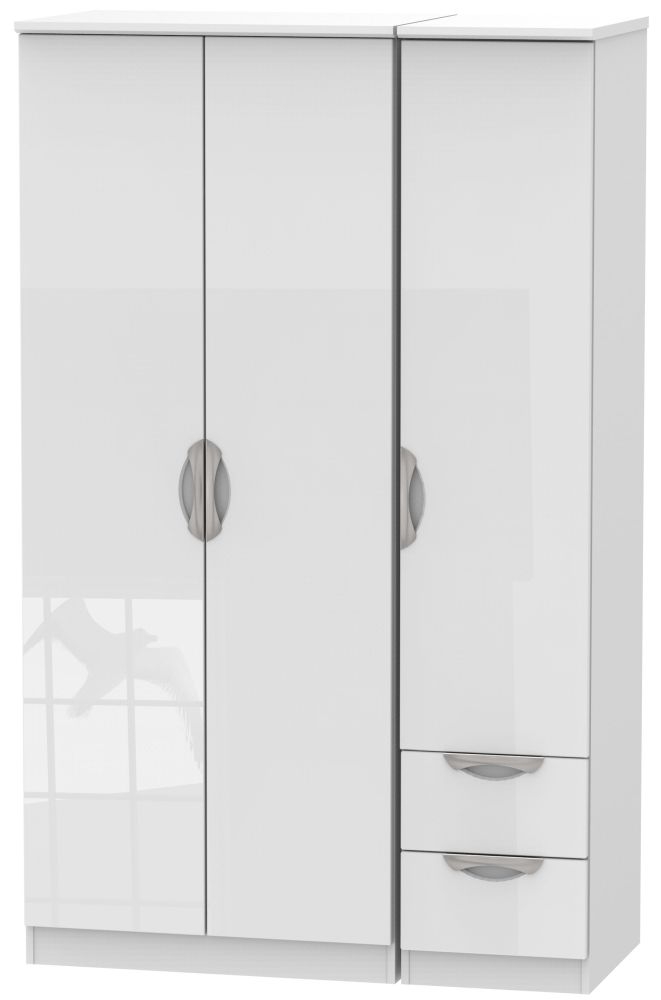 Camden White Gloss 3 Door Triple Wardrobe - RHF 2 Drawers