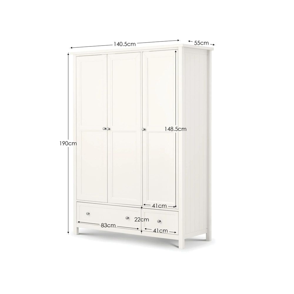 Maine Wardrobe - 3 Door - 2 Drawer - White
