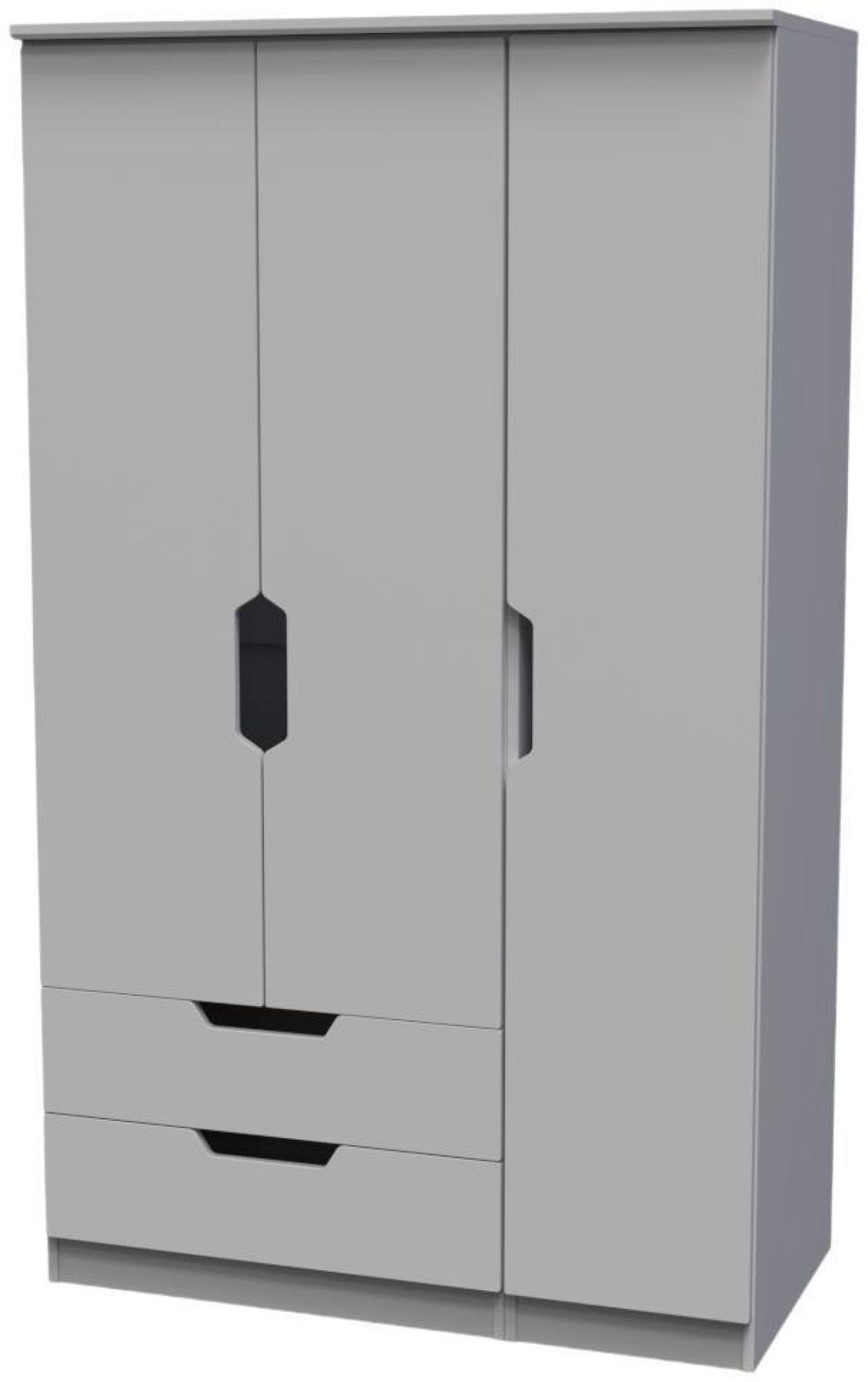 Bella Grey 3 Door Triple Wardrobe - LHF 2 Drawers