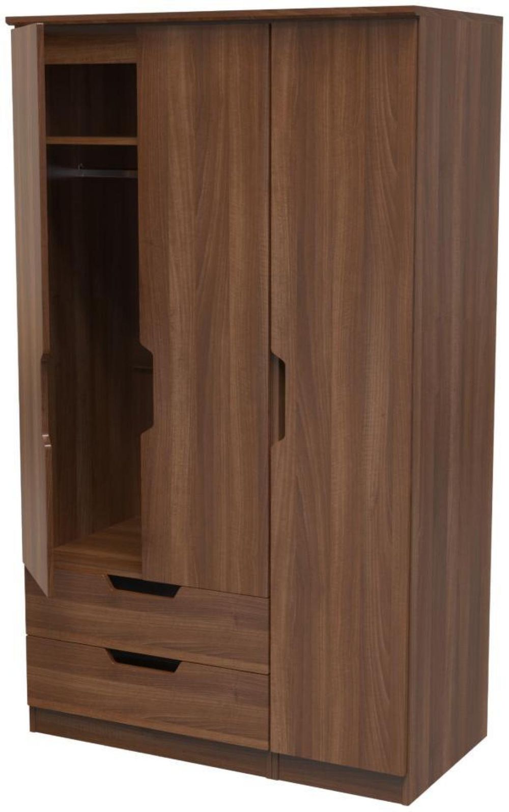 Bella Walnut Effect 3 Door Triple Wardrobe - LHF 2 Drawers