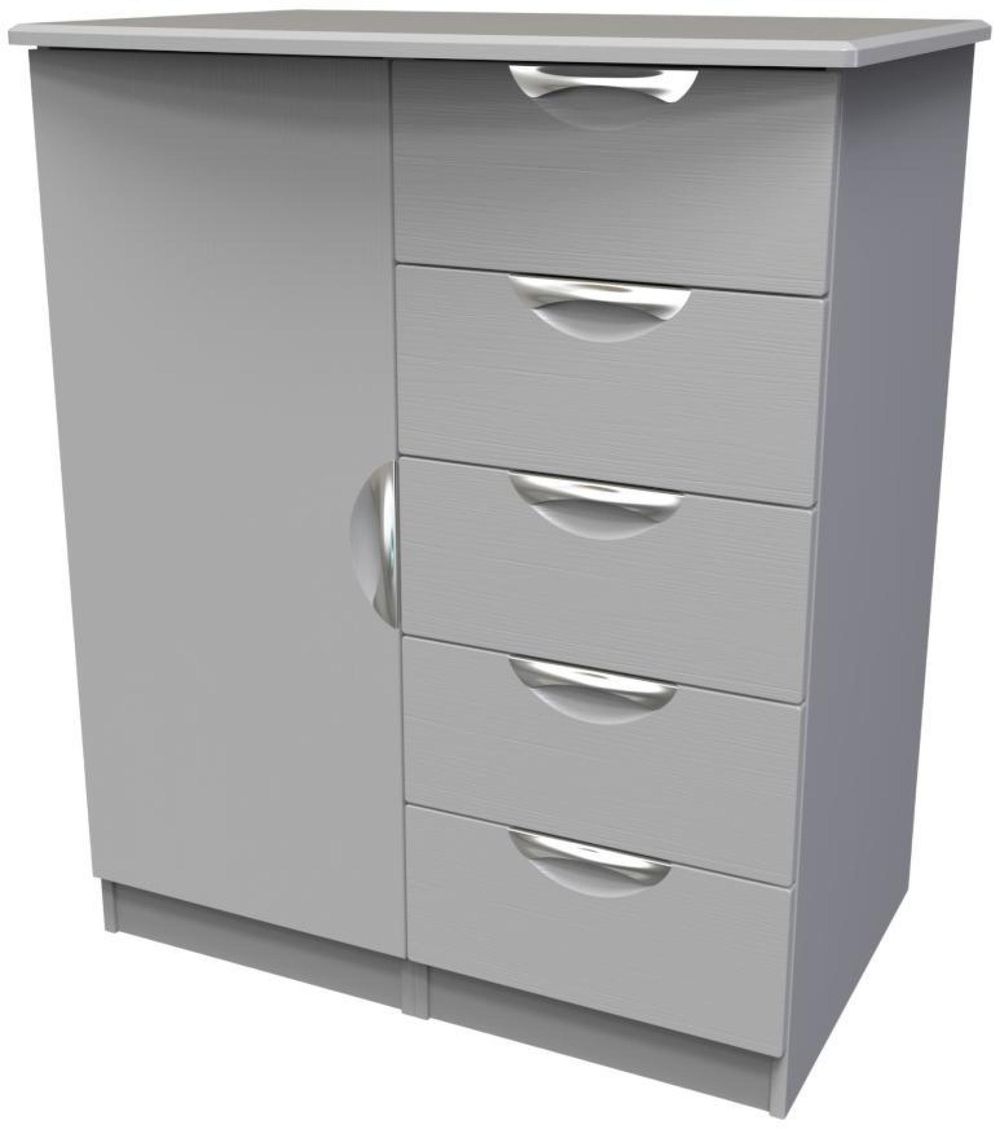 • Carcass: 18mm MFC furniture board, with ABS edging tapes (2mm)• Front: 18mm MDF , HTV Vinyl wrapped. With 2 mm edge. Routed pattern• Construction: Glued, dowelled and screwed. Metal KD fixings, castors wheel• Handle: Camden - recessed fit. Metallic chrome finish. 200mm in length.• Door: 18mm MDF, HTV Vinyl wrapped. front with 2 mm edge• Hinge: Standard• Drawer:18mm MFC, HTV Vinyl wrapped . 3mm hardboard base, chipboard wrap with a 15mm wall. Soft close.• Top: 18mm MDF, HTV Vinyl Wrapped• Drawer Runner: Soft close York runner