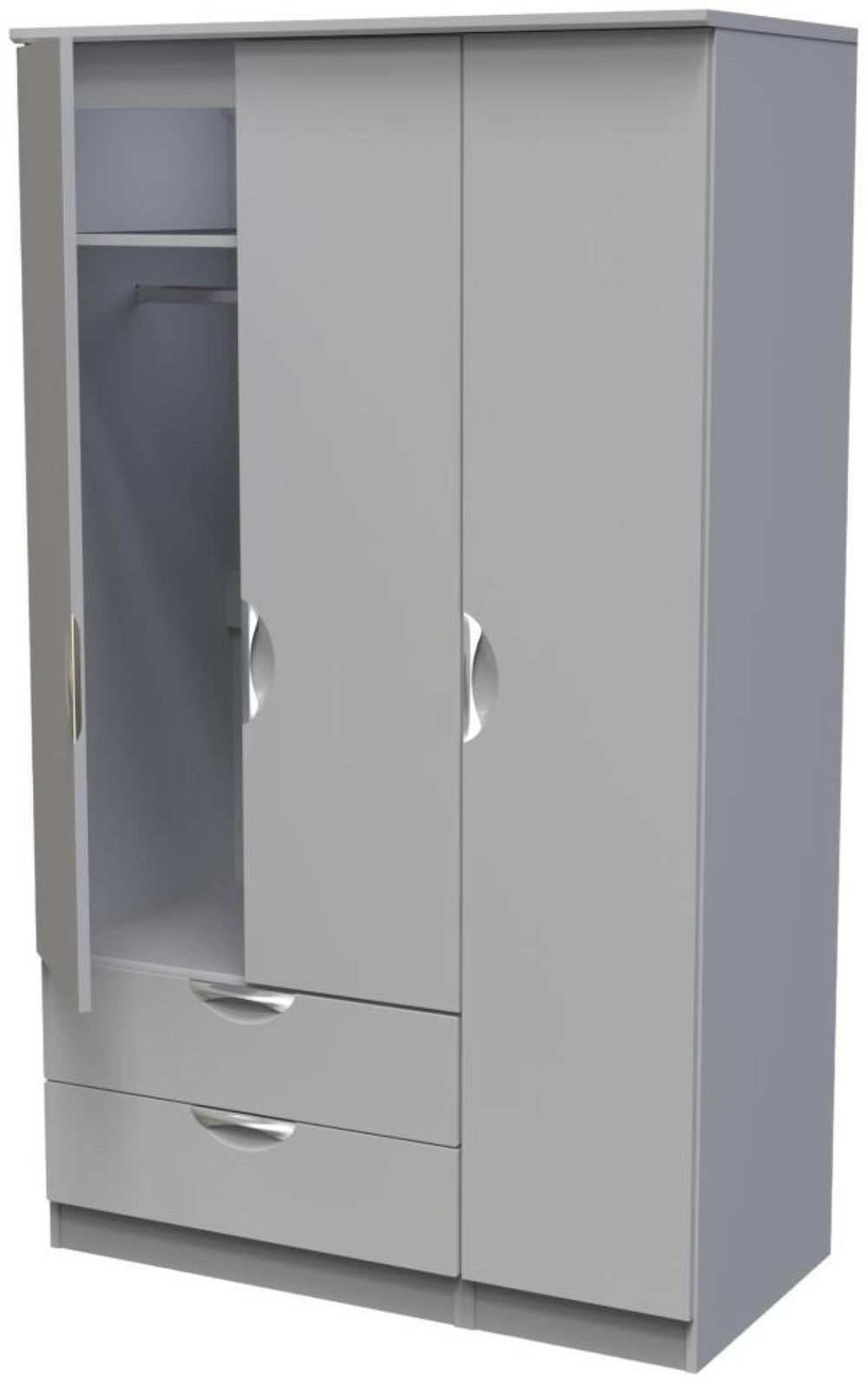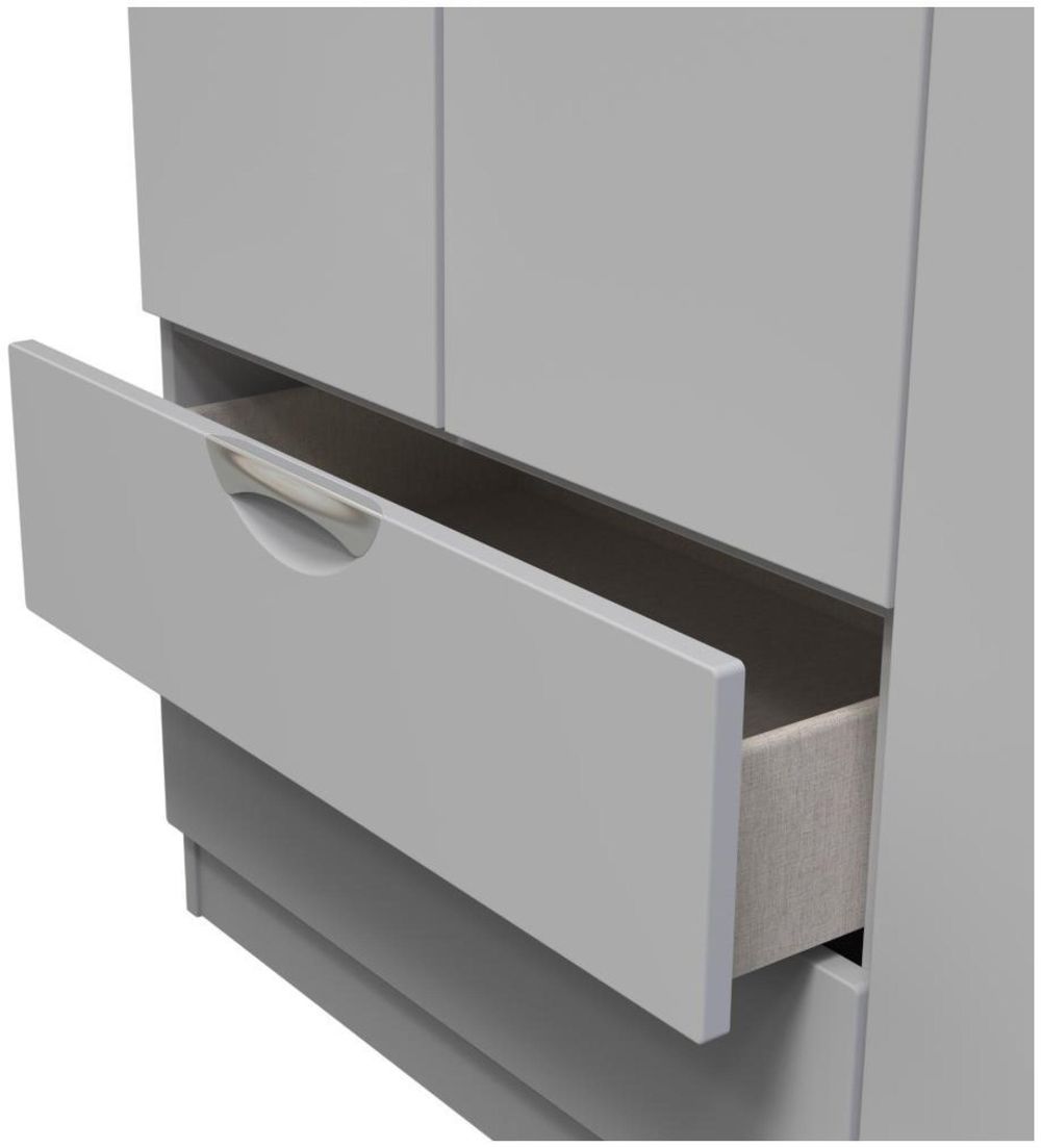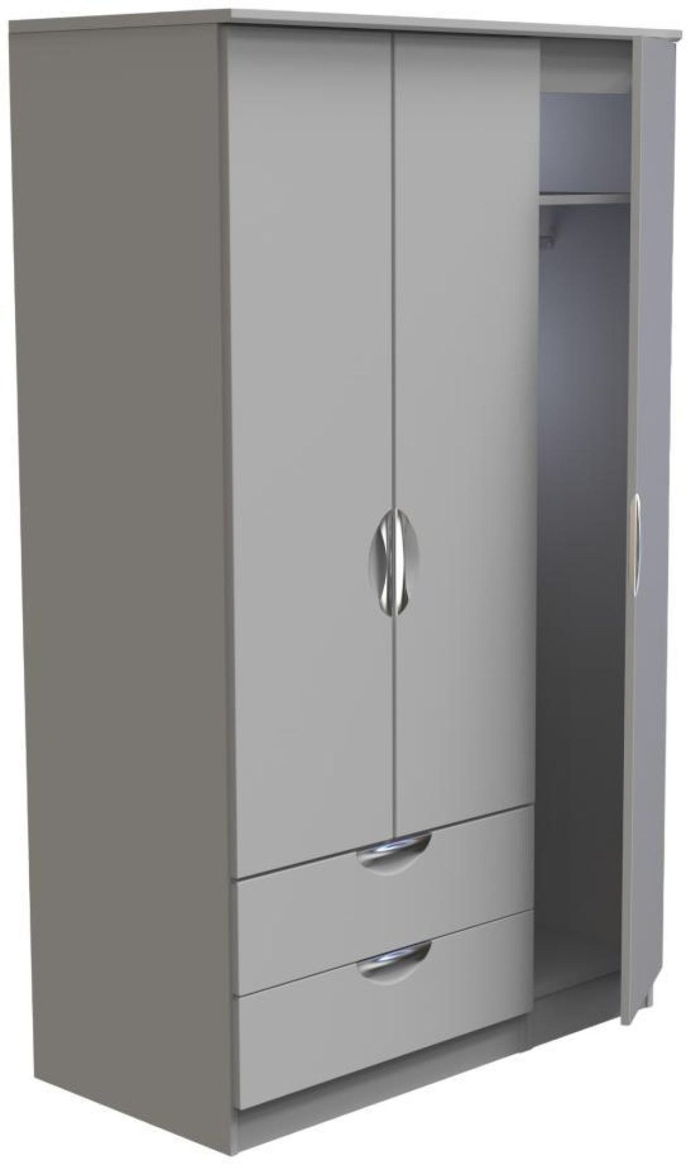 Flora Grey 3 Door Triple Wardrobe - LHF 2 Drawers