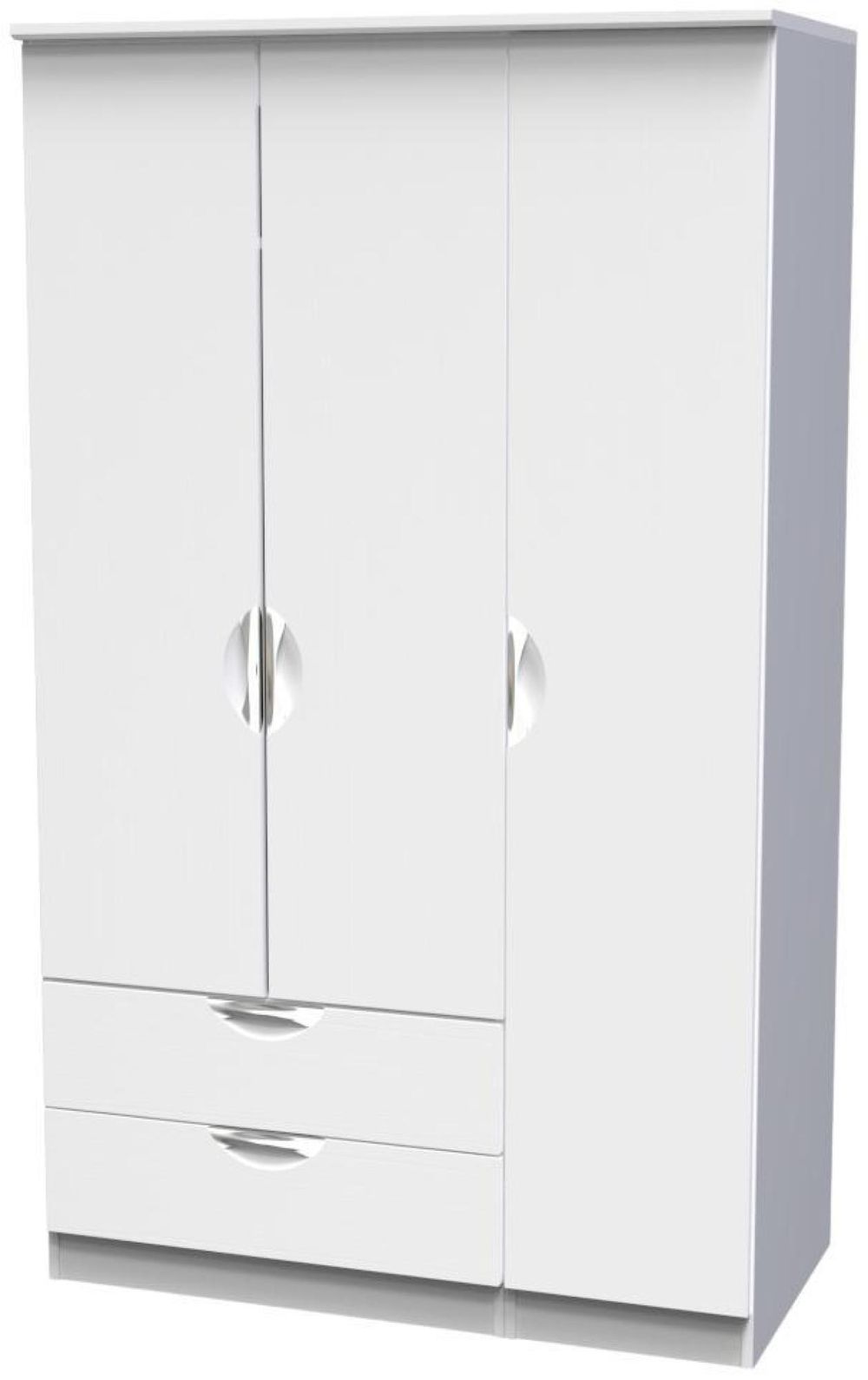 Flora White 3 Door Triple Wardrobe - LHF 2 Drawers