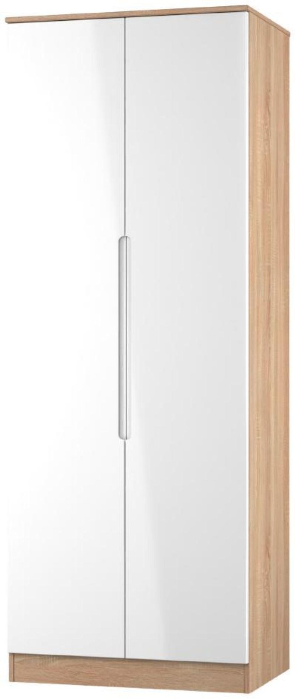 Milan White Gloss and Oak Effect 2 Door Plain Tall Wardrobe