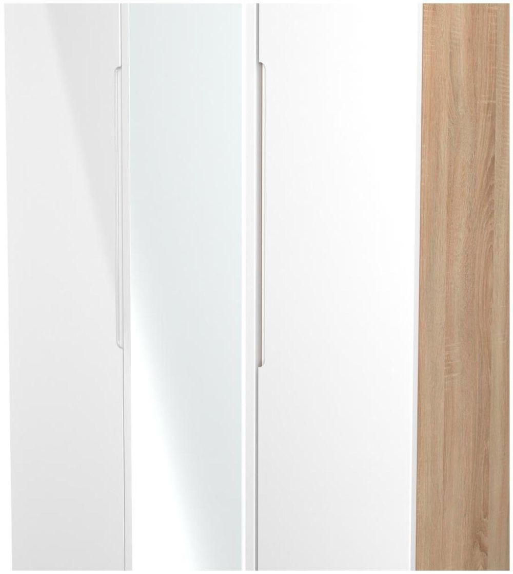 Milan White Gloss and Oak Effect 3 Door Tall Triple Wardrobe - 1 Mirror